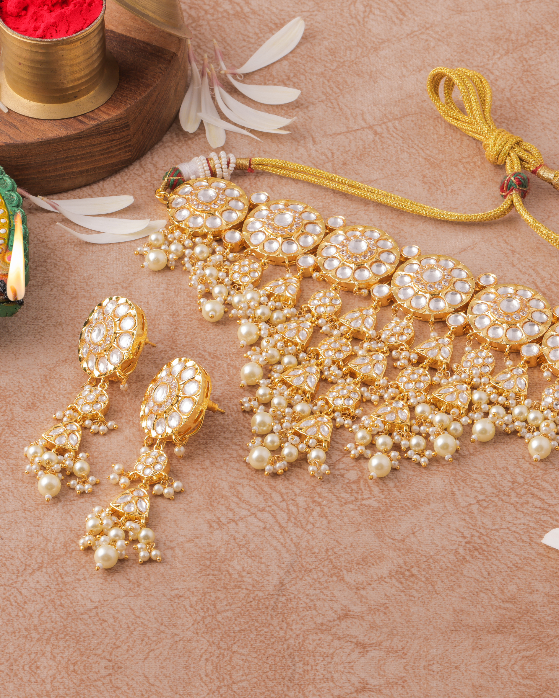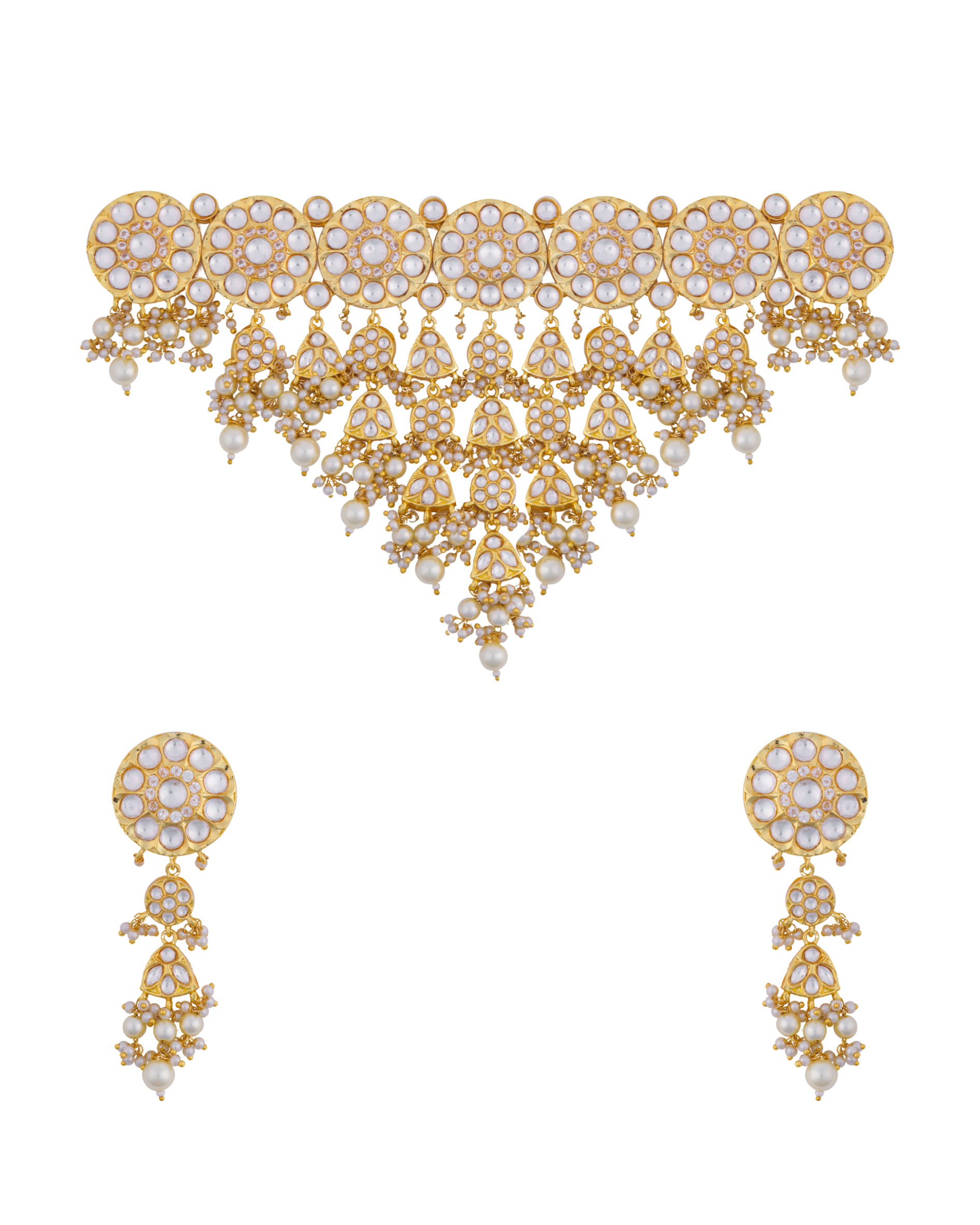 Elevate your elegance with our Traditional Kundan Waterfall Choker Necklace Set, a masterpiece that beautifully merges traditional craftsmanship with modern design. This stunning choker features a cascading waterfall design, where rows of radiant Kundan stones flow gracefully, creating a mesmerizing effect that draws all eyes to you.