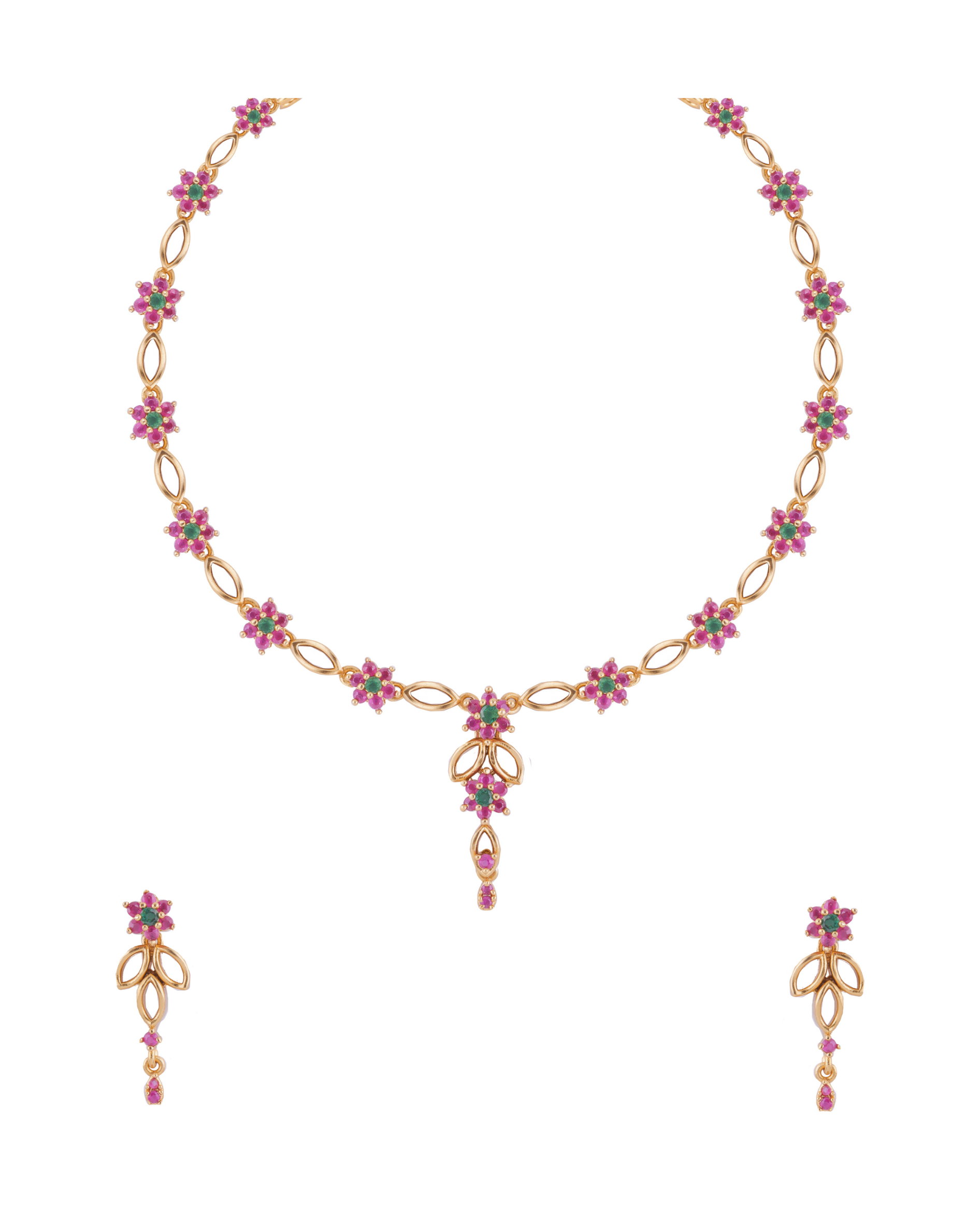 Antique Gold Dainty Flower Necklace Set