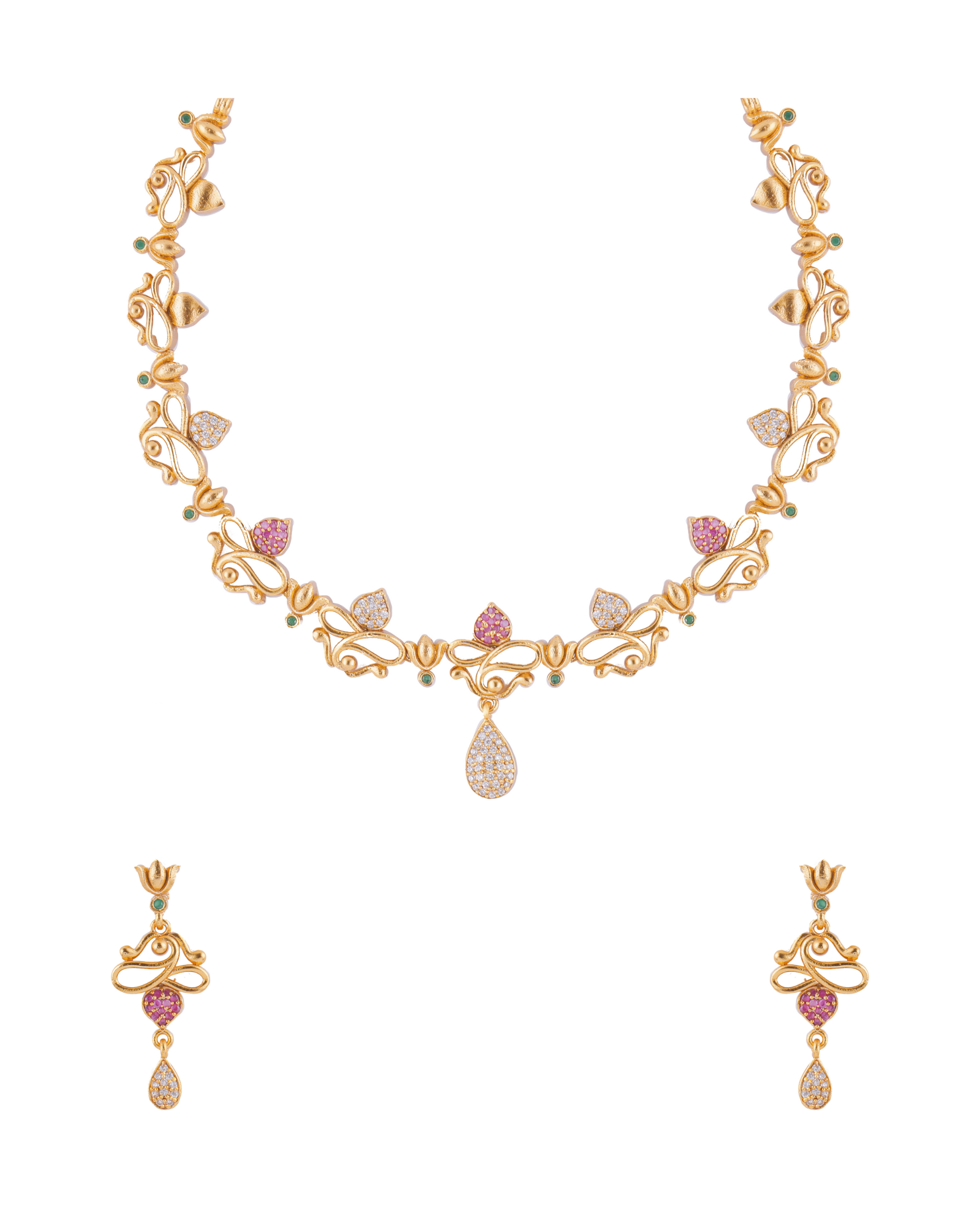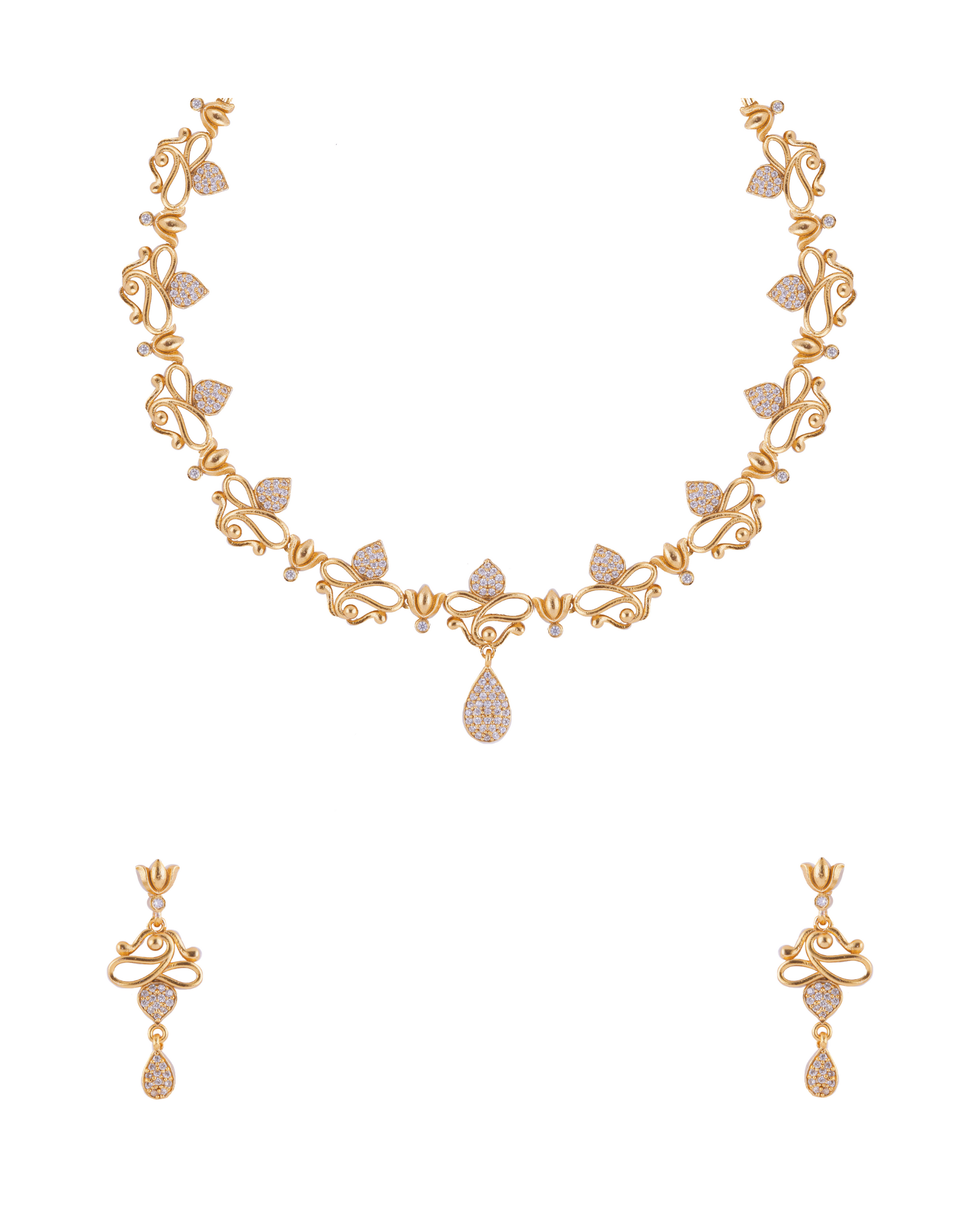 Antique Gold Designer Leaf Necklace Set