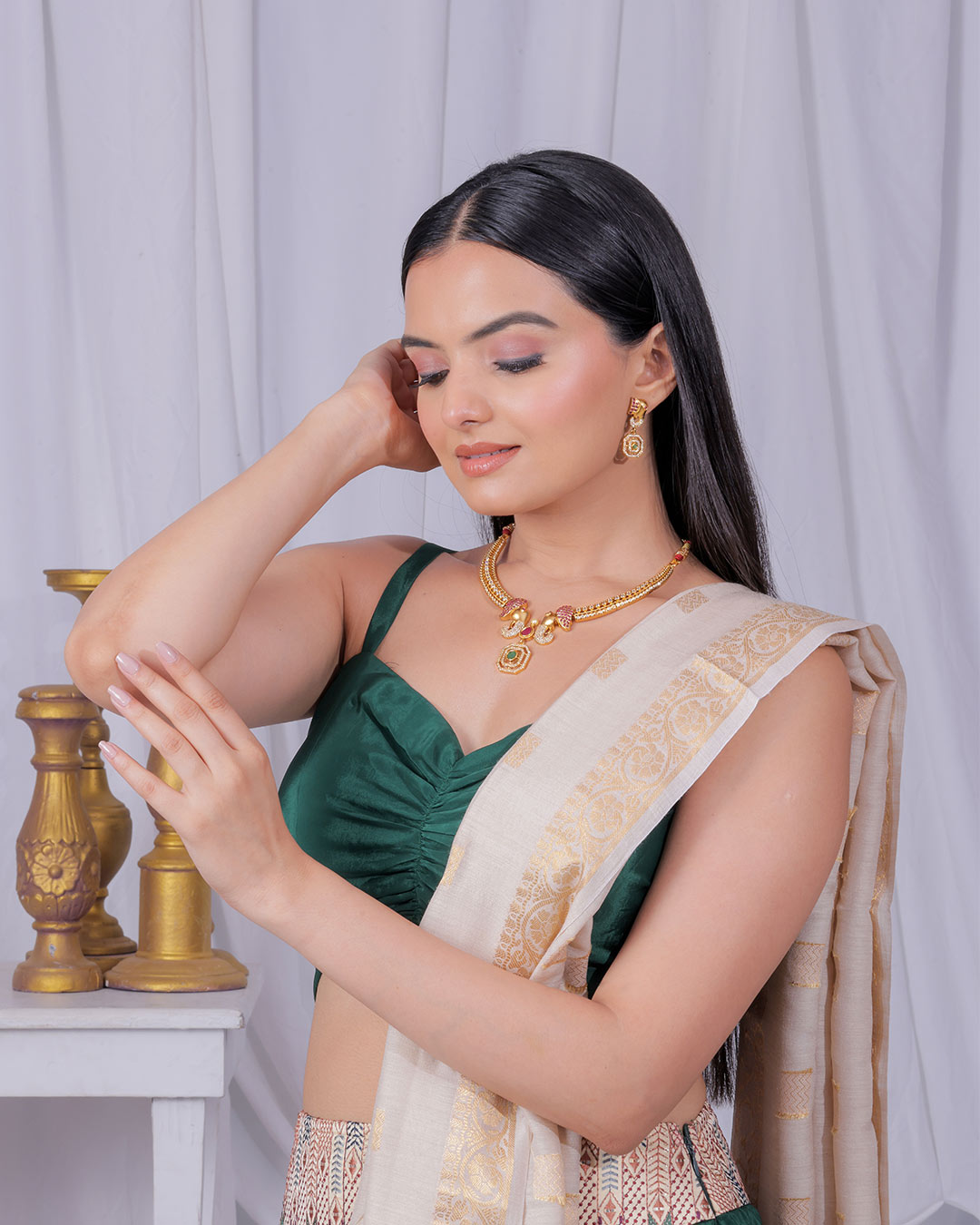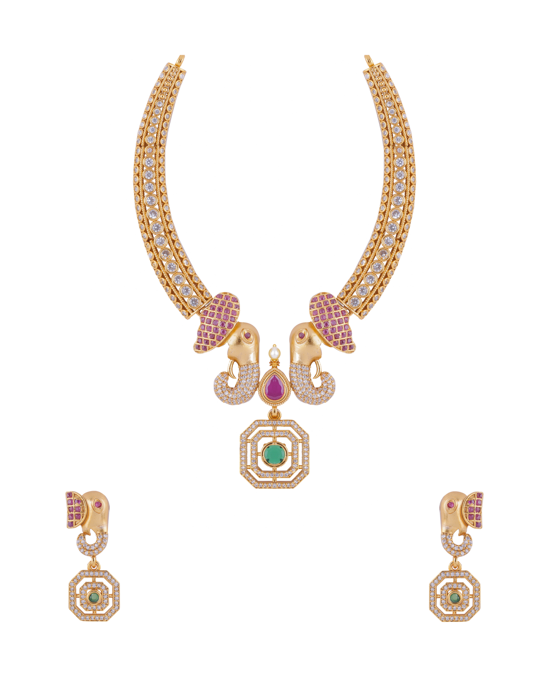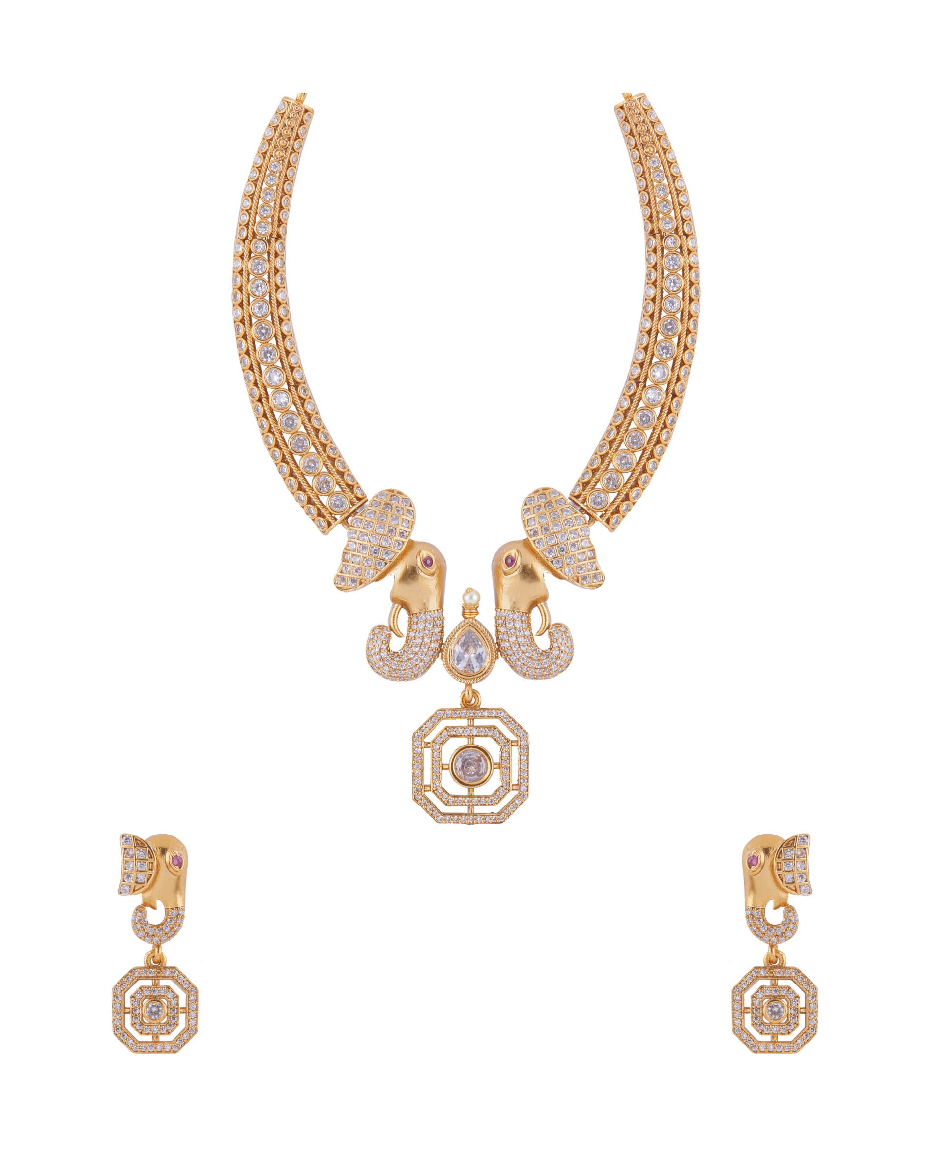 Antique Gold Elephant Motif Necklace Set