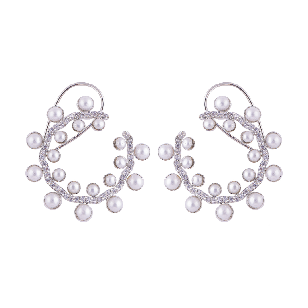 Each pearl is carefully selected for its impeccable quality and natural radiance, creating a harmonious blend of beauty and grace. The cluster arrangement creates a captivating visual effect, drawing attention to the intricate details and enhancing the overall appeal of the earrings.