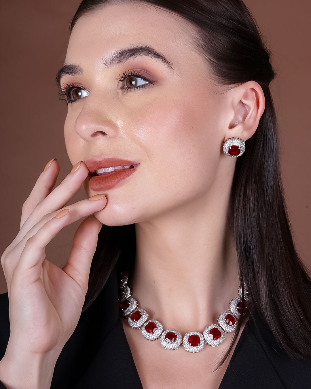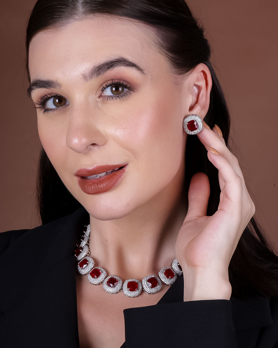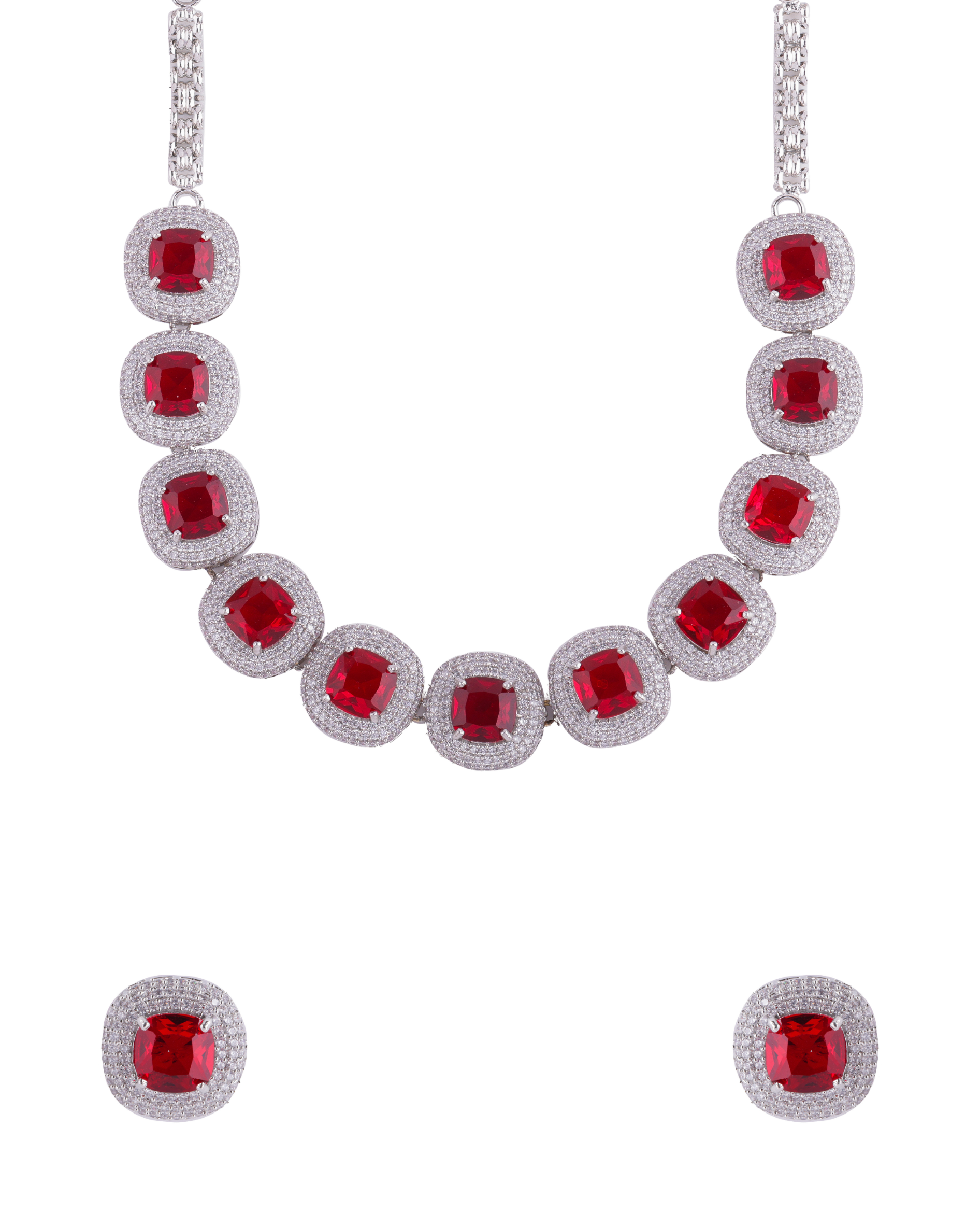 Crafted from high-quality materials, our cushion cut stone necklace set is both stylish and timeless. The adjustable necklace chain ensures that you can wear the necklace at the perfect length for your outfit and neckline, while the matching earrings complete the look and add a touch of sophistication.