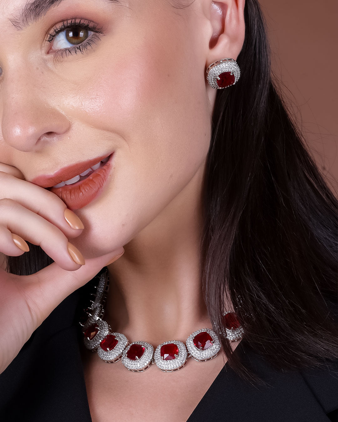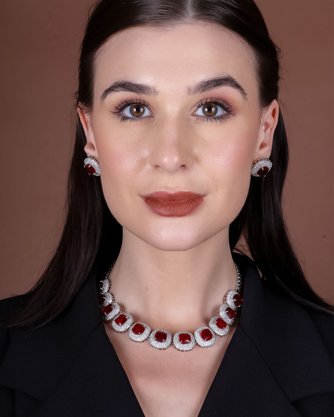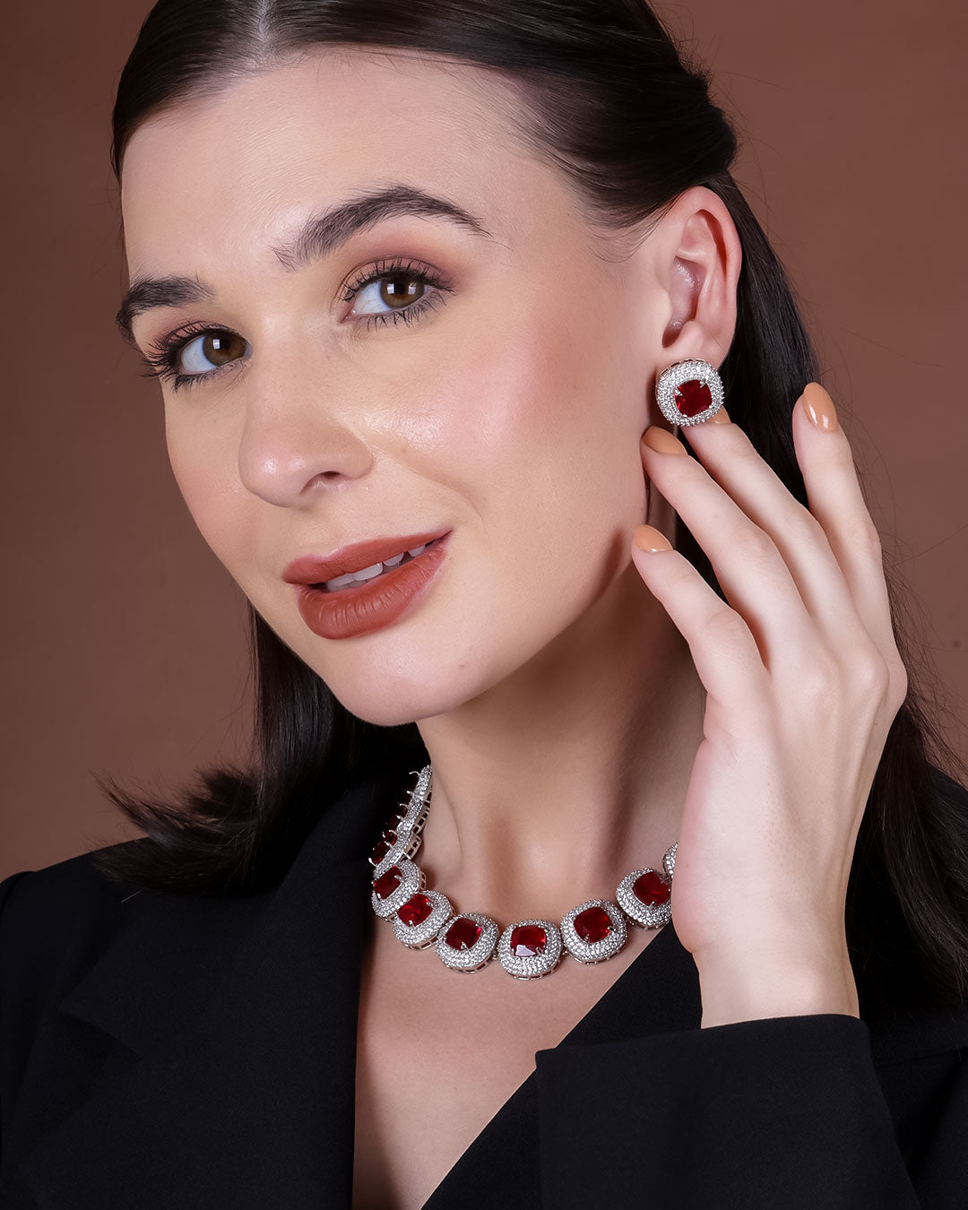 Crafted from high-quality materials, our cushion cut stone necklace set is both stylish and timeless. The adjustable necklace chain ensures that you can wear the necklace at the perfect length for your outfit and neckline, while the matching earrings complete the look and add a touch of sophistication.