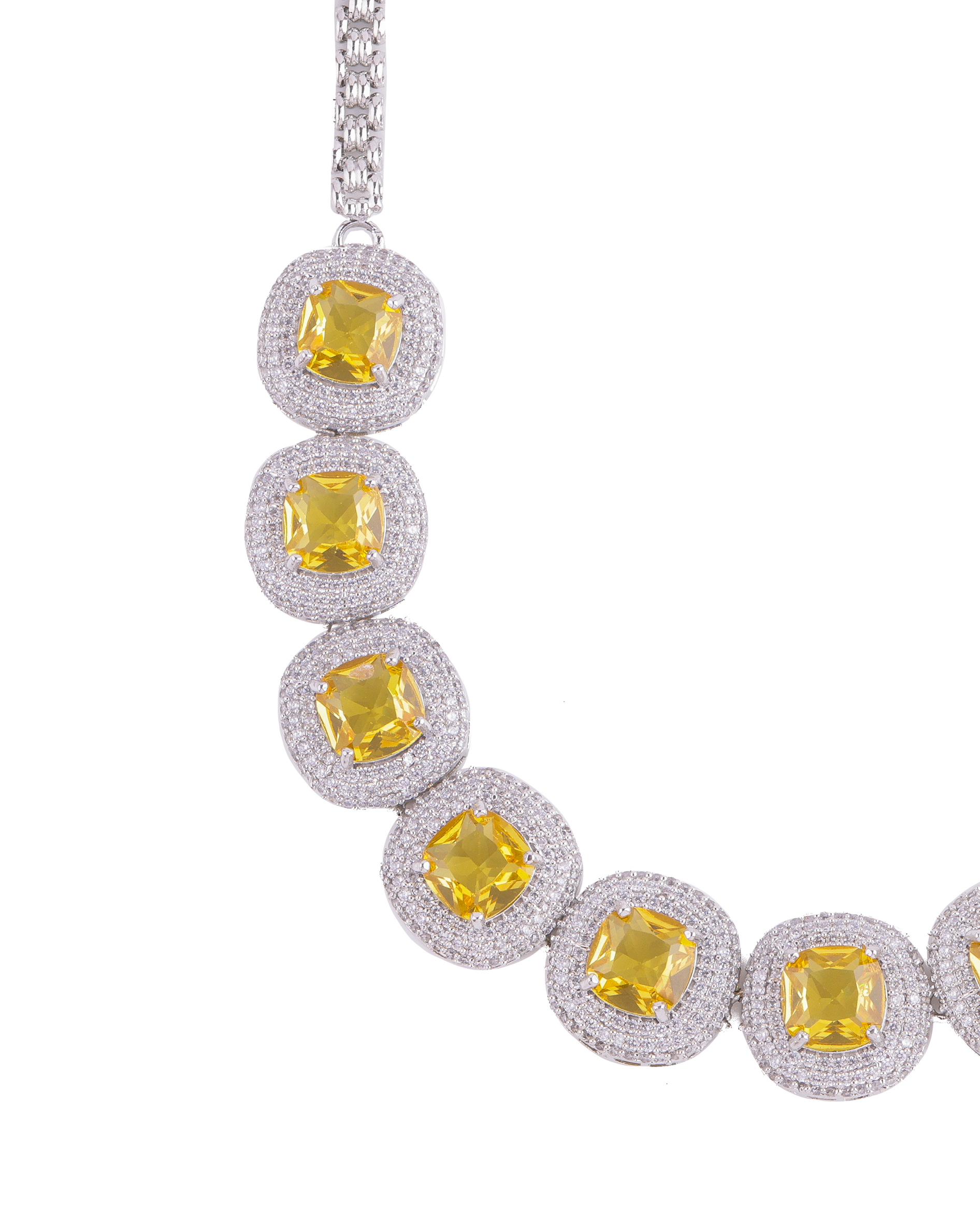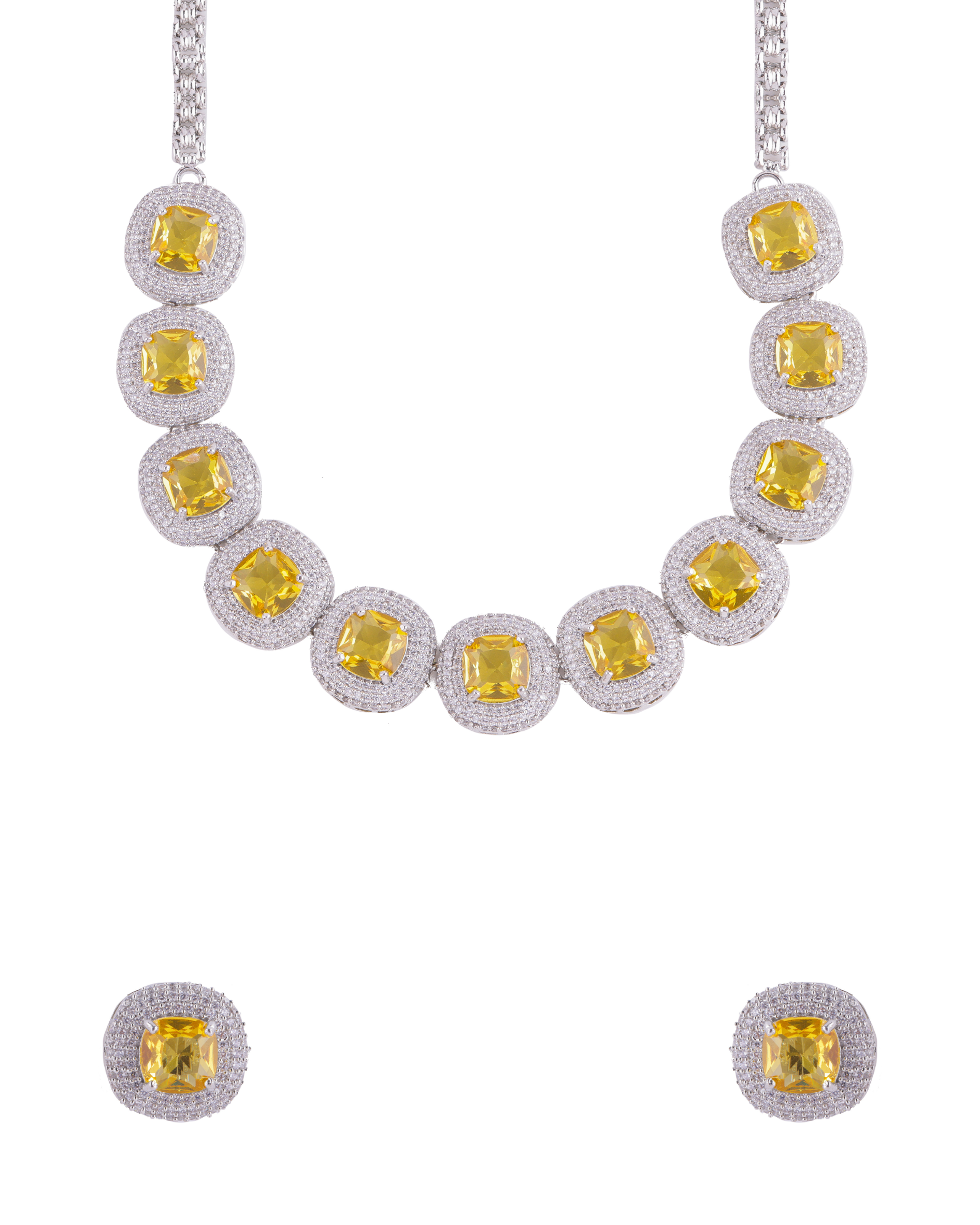 Whether you're dressing up for a special occasion or just want to add some sparkle to your everyday look, our cushion cut stone necklace set is the perfect accessory. With its elegant and understated design, this set is sure to become a staple in your jewellery collection.