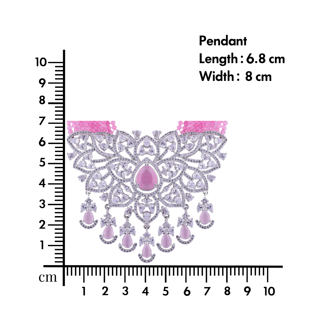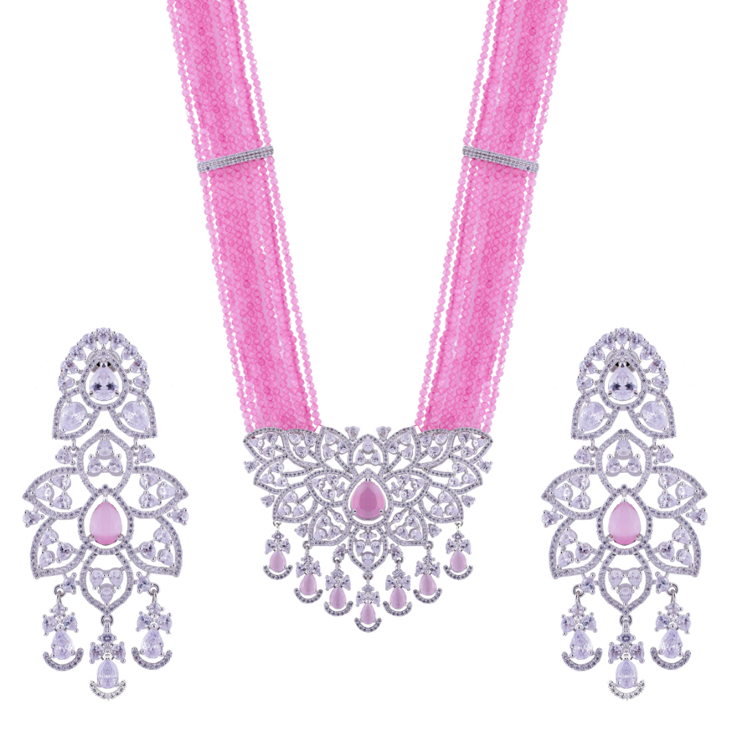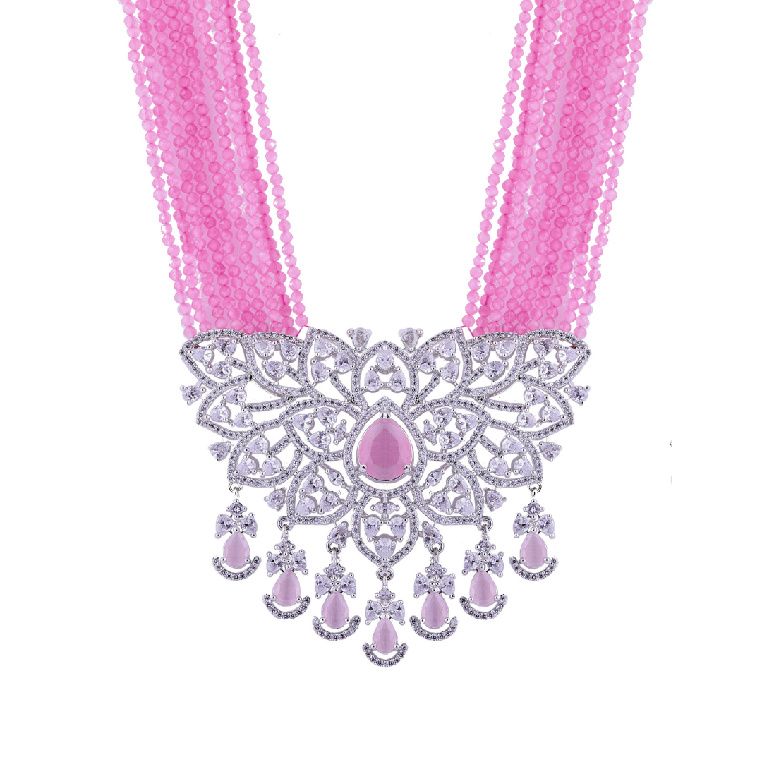 Radhika Pink Beads Zirconia Ranihaar Pendant Set