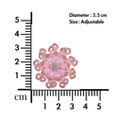 The centerpiece of this ring is a stunning flower motif, meticulously crafted with intricate detailing and exquisite craftsmanship. The petals of the flower are delicately curved and adorned with sparkling gemstones that catch the light from every angle. The vibrant colors and shimmering stones bring the flower to life, creating a mesmerizing visual effect.