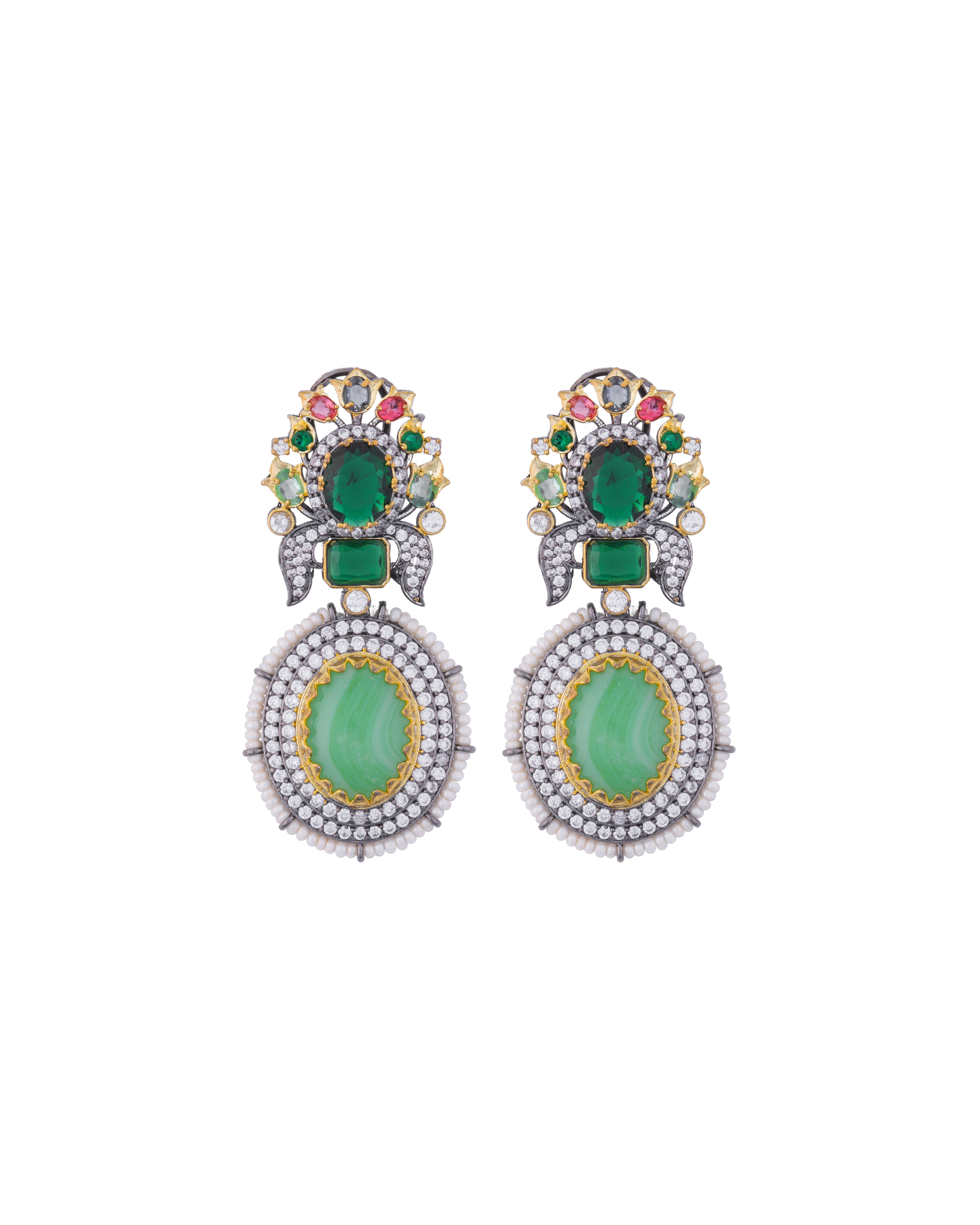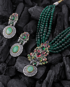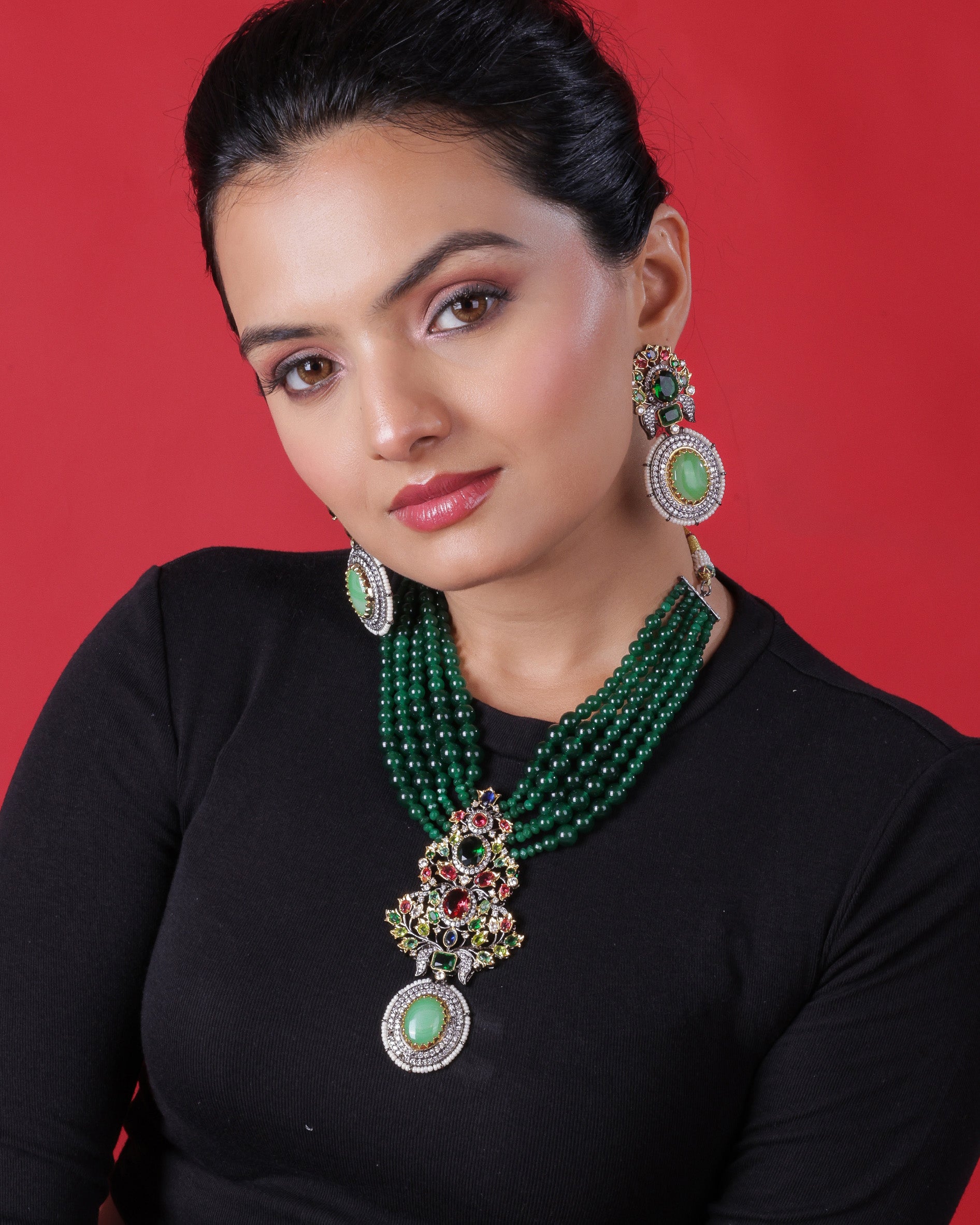 Each flower in this necklace is adorned with multi-colored stones that are carefully selected for their brilliance and vibrancy. The arrangement creates a captivating spectrum of colors, adding a joyful yet refined touch to your ensemble. Whether you're attending a wedding, a festive celebration, or simply wish to elevate your everyday style, this necklace set is versatile enough to complement a variety of outfits.