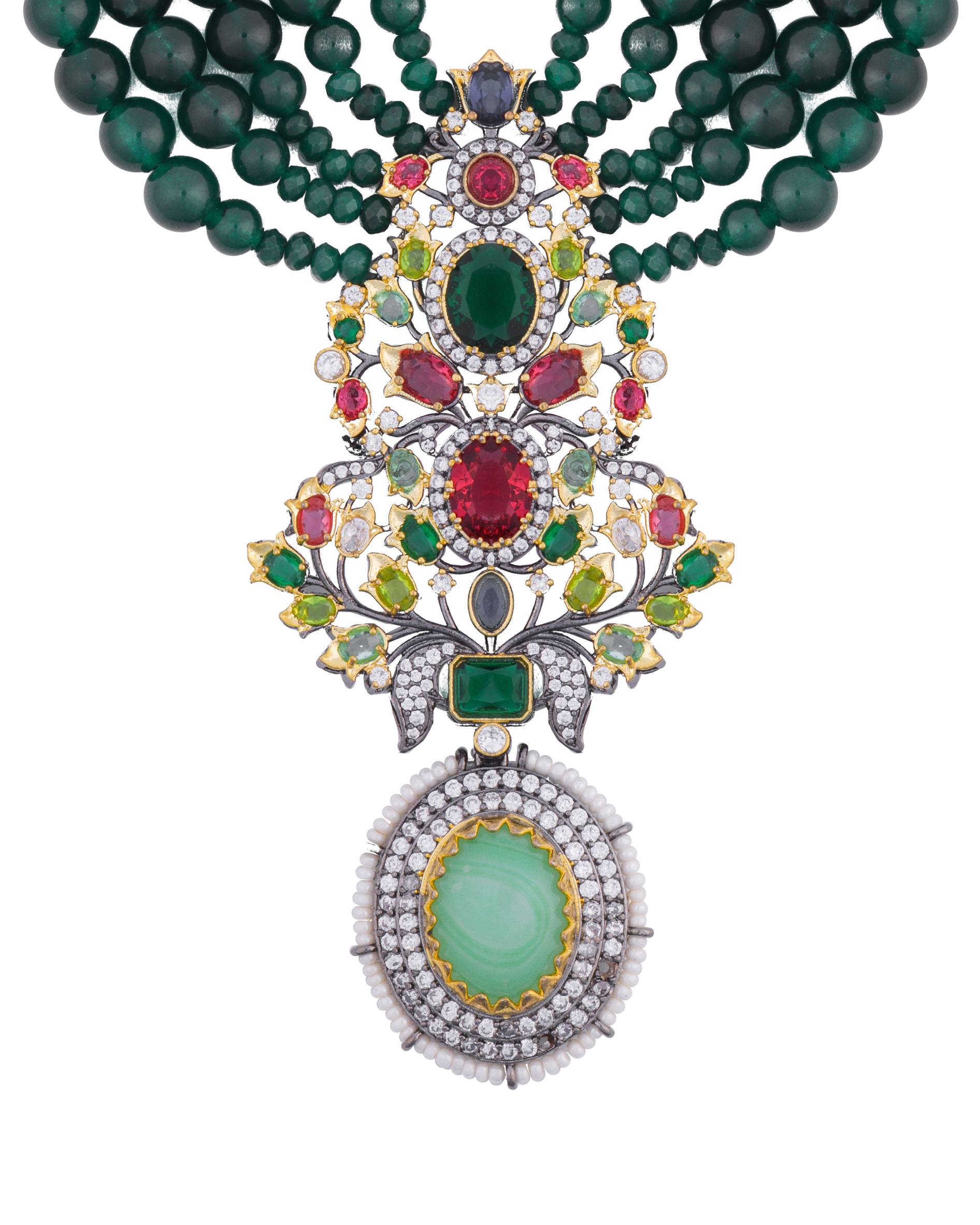 Embrace the beauty of nature and vibrant elegance with our Designer Multi-stone Flower Necklace Set. This exquisite piece features a stunning array of colorful stones, intricately arranged to form delicate floral motifs that exude charm and sophistication. The necklace’s design is inspired by the timeless allure of flowers, making it a perfect blend of nature and artistry.