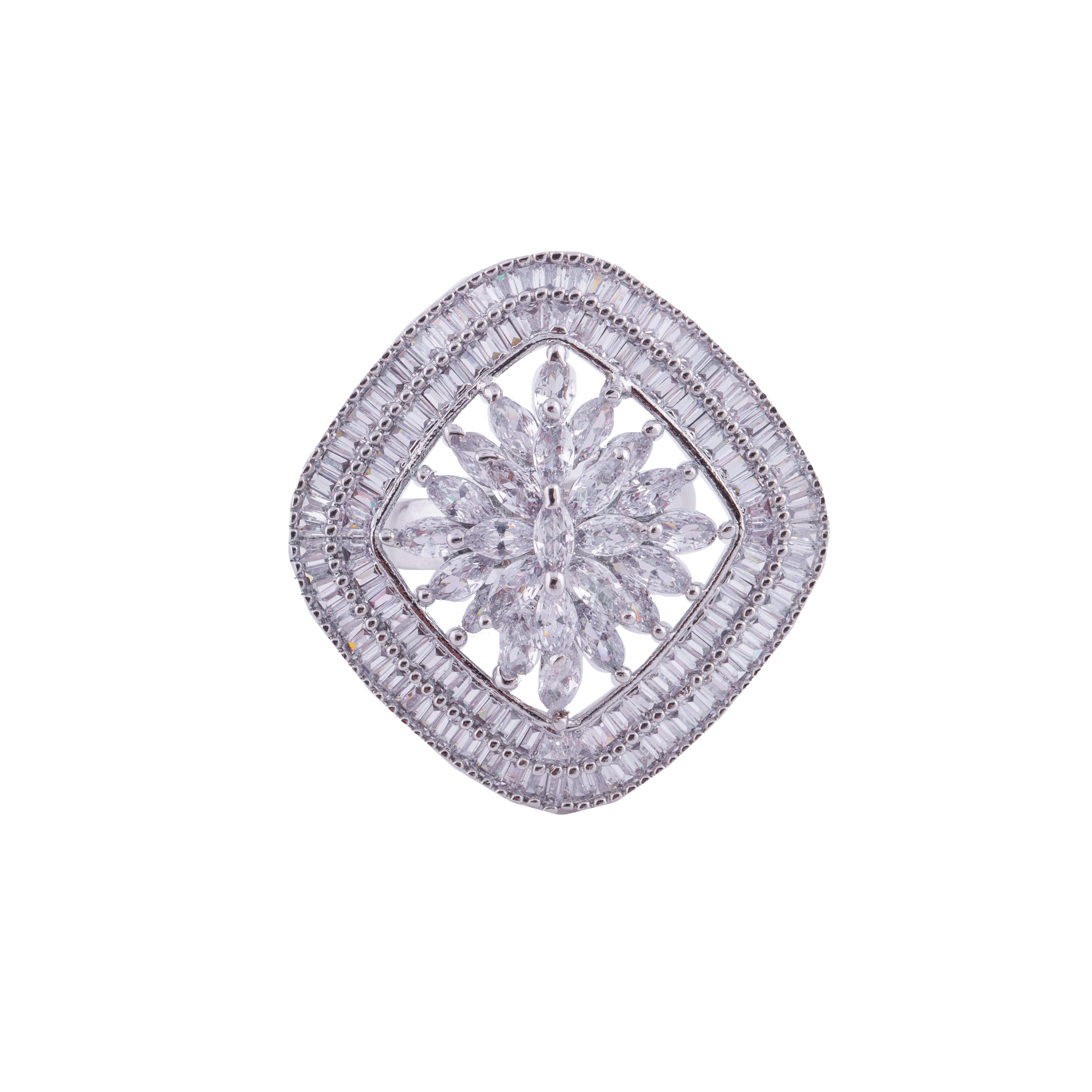 Introducing our Designer Square Zirconia Ring, a true embodiment of modern elegance and sophistication. This exquisite ring is designed to captivate and enchant, making it the perfect accessory for any occasion.