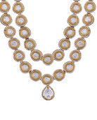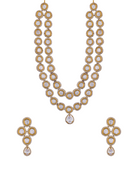 The double-layer design adds depth and dimension, creating a regal silhouette that gracefully adorns the neckline. Moissanite Polki stones, known for their unmatched sparkle and durability, are carefully arranged to offer a radiant look that rivals even the finest diamonds. This necklace set is perfect for weddings, grand celebrations, or any occasion where you want to make a lasting impression.