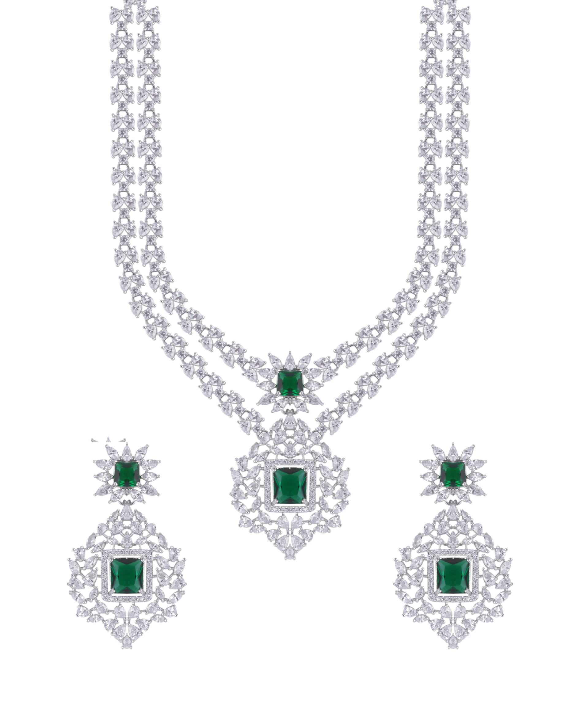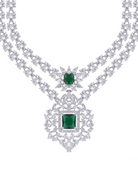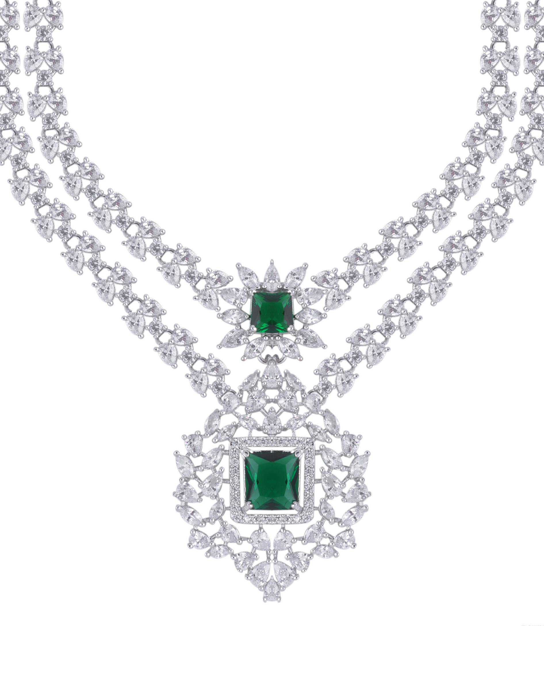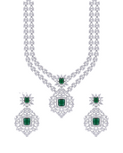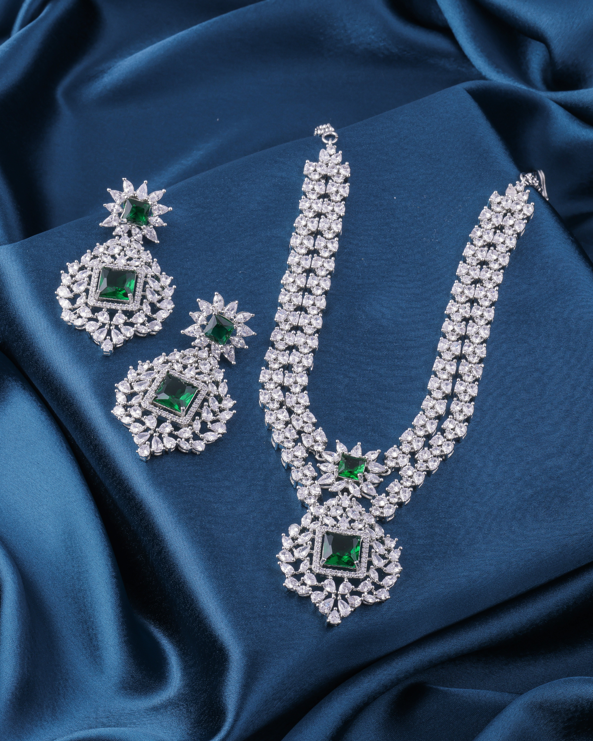 Radiate elegance with our Emerald Radiance Necklace Set. This luxurious set features a stunning array of emerald stones and matching earrings, designed to captivate and impress. Perfect for formal events and special occasions, the sparkling faux diamonds add an extra touch of sophistication. Shop now for elegant imitation jewelry and elevate your style with this exquisite set.