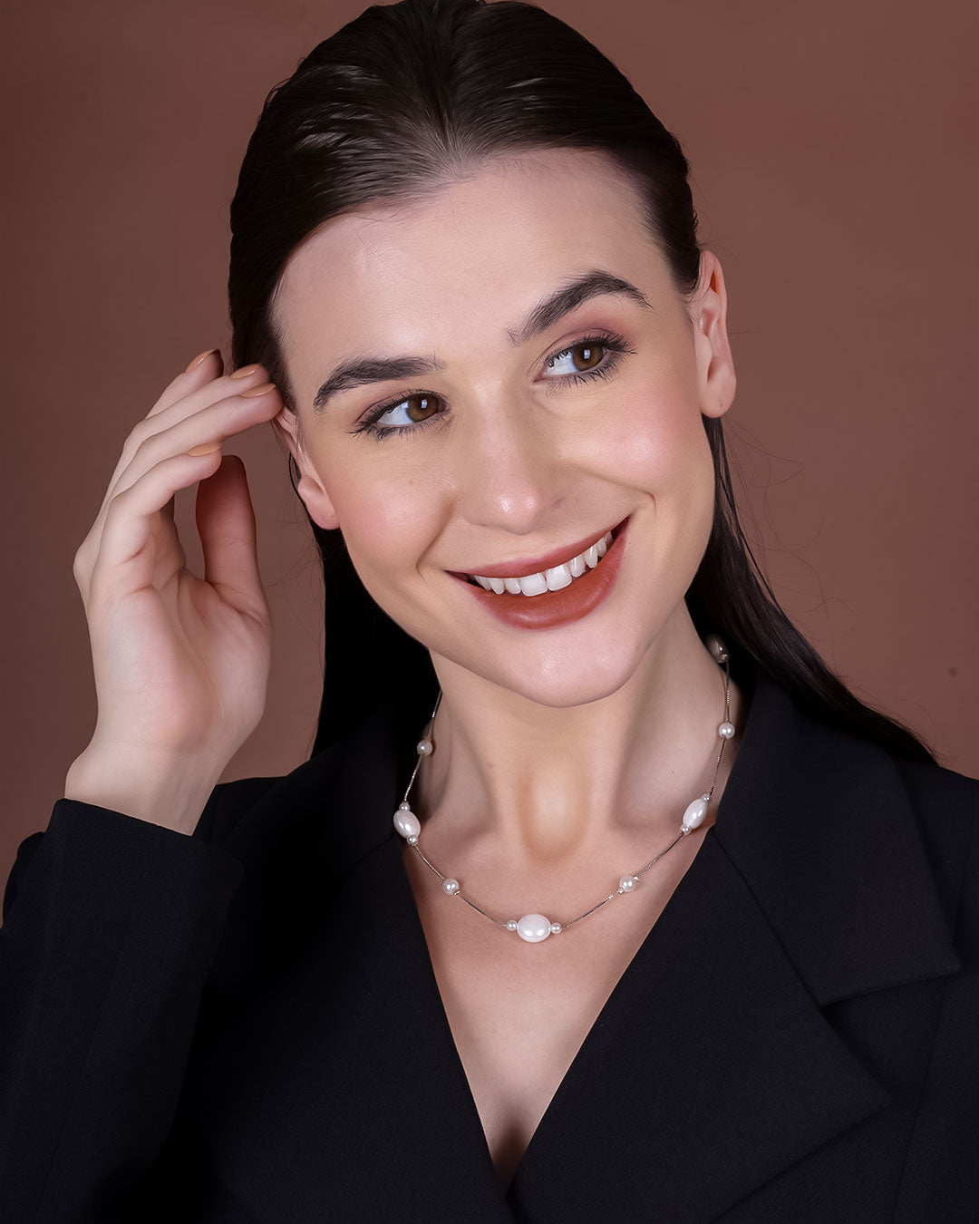 The pearls, carefully handpicked for their enchanting luster and smooth surface, are delicately strung together on a dainty and durable chain. The soft iridescence of the pearls adds a touch of sophistication to any outfit, making it a versatile accessory for both casual and formal occasions.