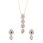 The high-quality gold plating provides a durable and long-lasting finish that is sure to retain its luster for years to come. The set is designed to be comfortable and easy to wear, with a secure clasp that ensures that the pendant and earrings stay in place throughout the day. With its timeless design and exceptional craftsmanship, it's sure to be a cherished addition to any jewellery collection.