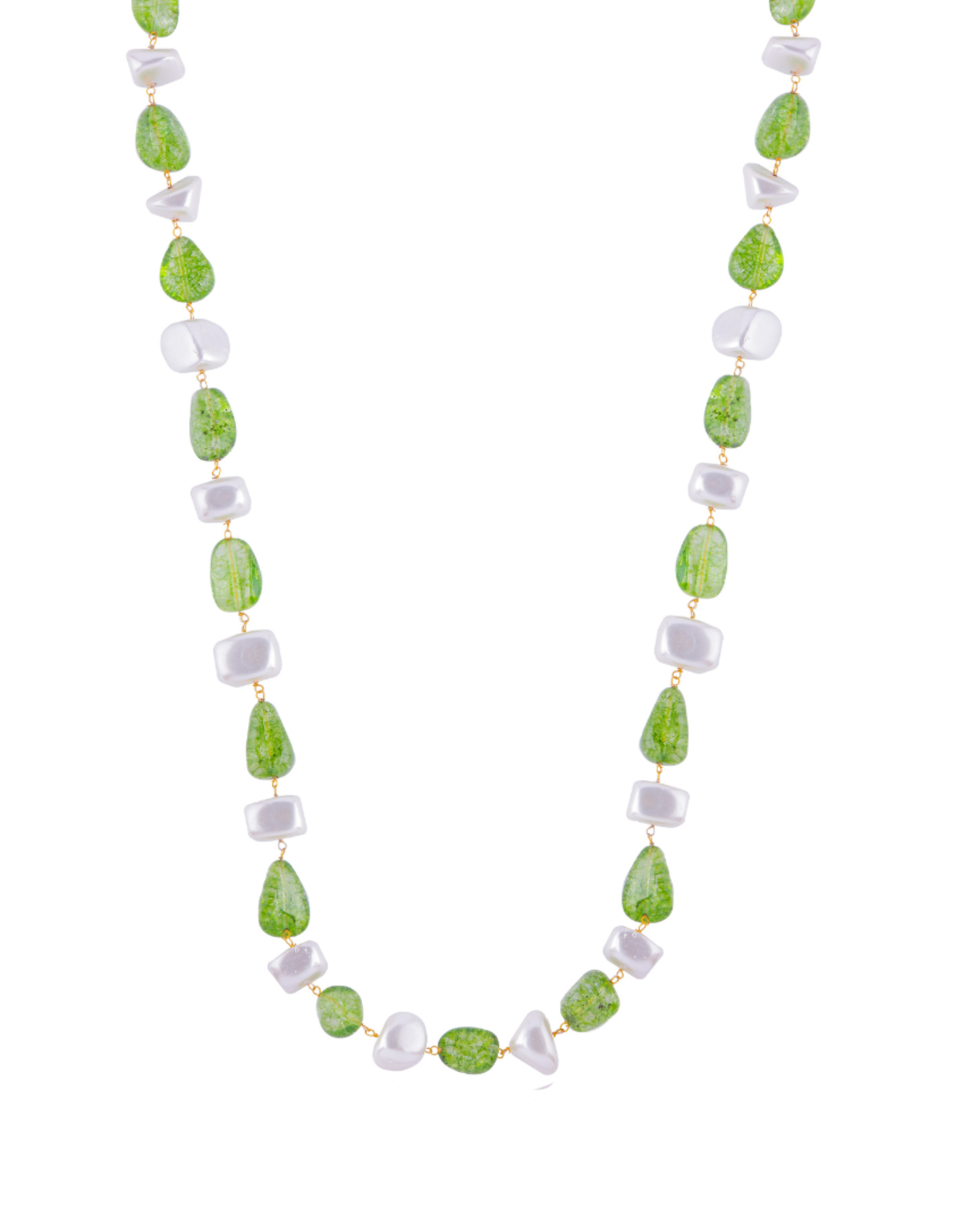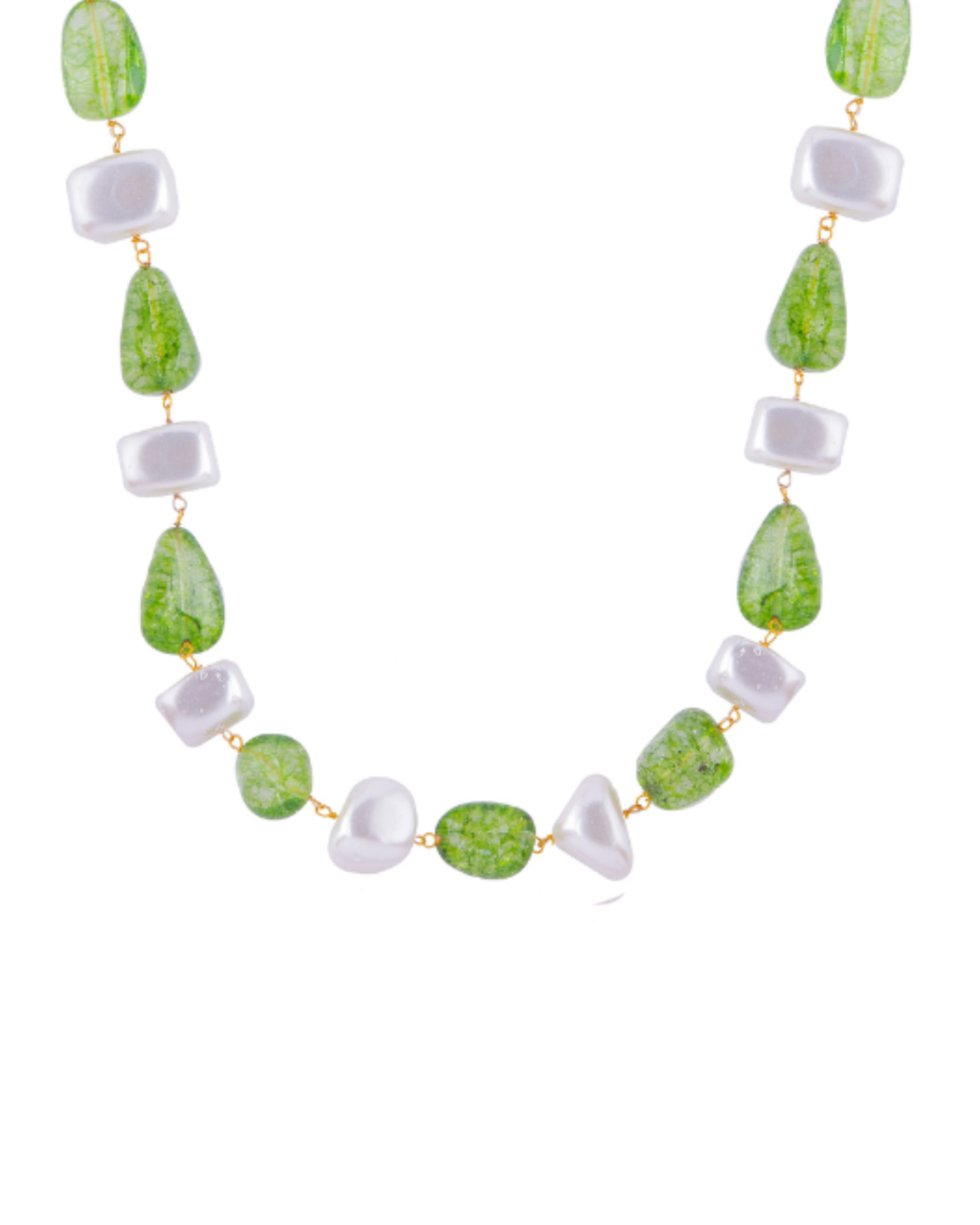 Elevate your style with the Green Stone & Pearl Chain Necklace, whether you're attending a special event or simply adding a touch of nature-inspired beauty to your everyday look. Embrace the enchanting allure of green stones and the timeless elegance of pearls with this exquisite necklace, destined to become a cherished piece in your jewelry collection.