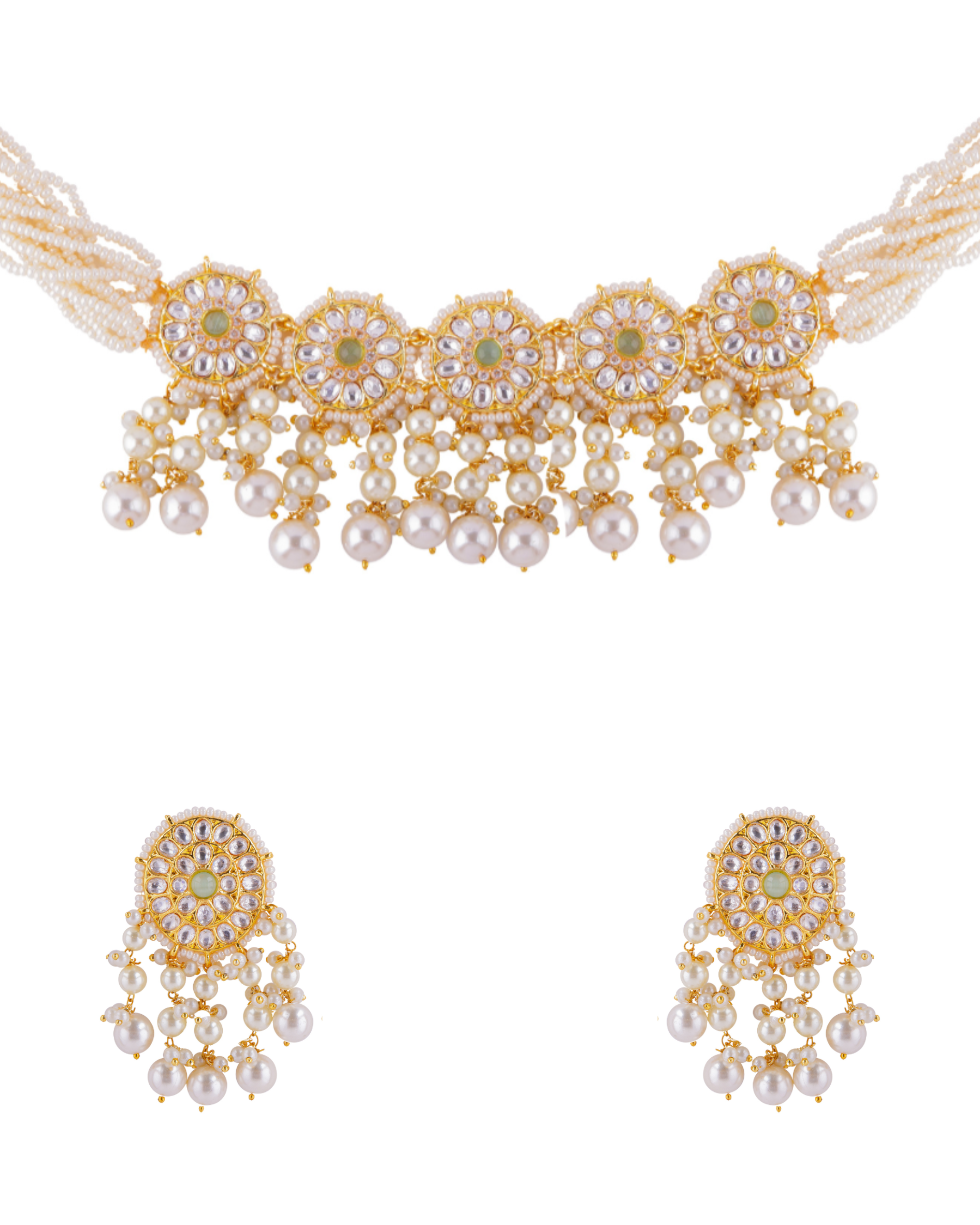Mithila Kundan Pearl Beaded Choker Necklace Set