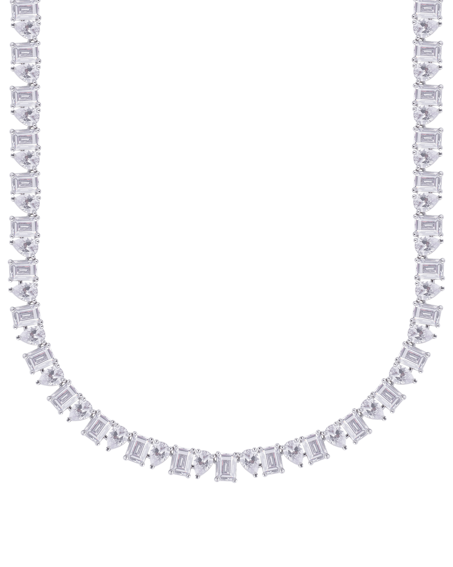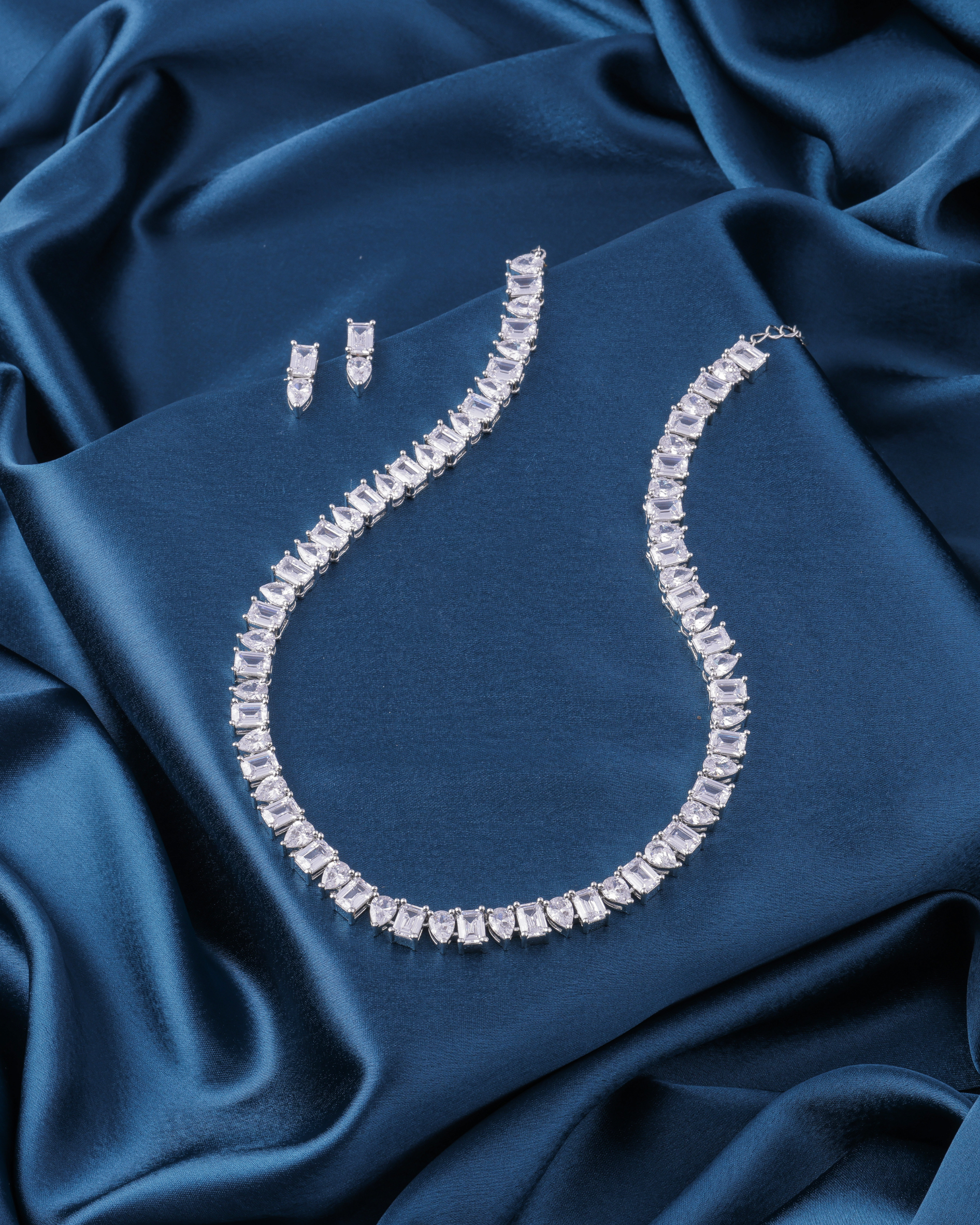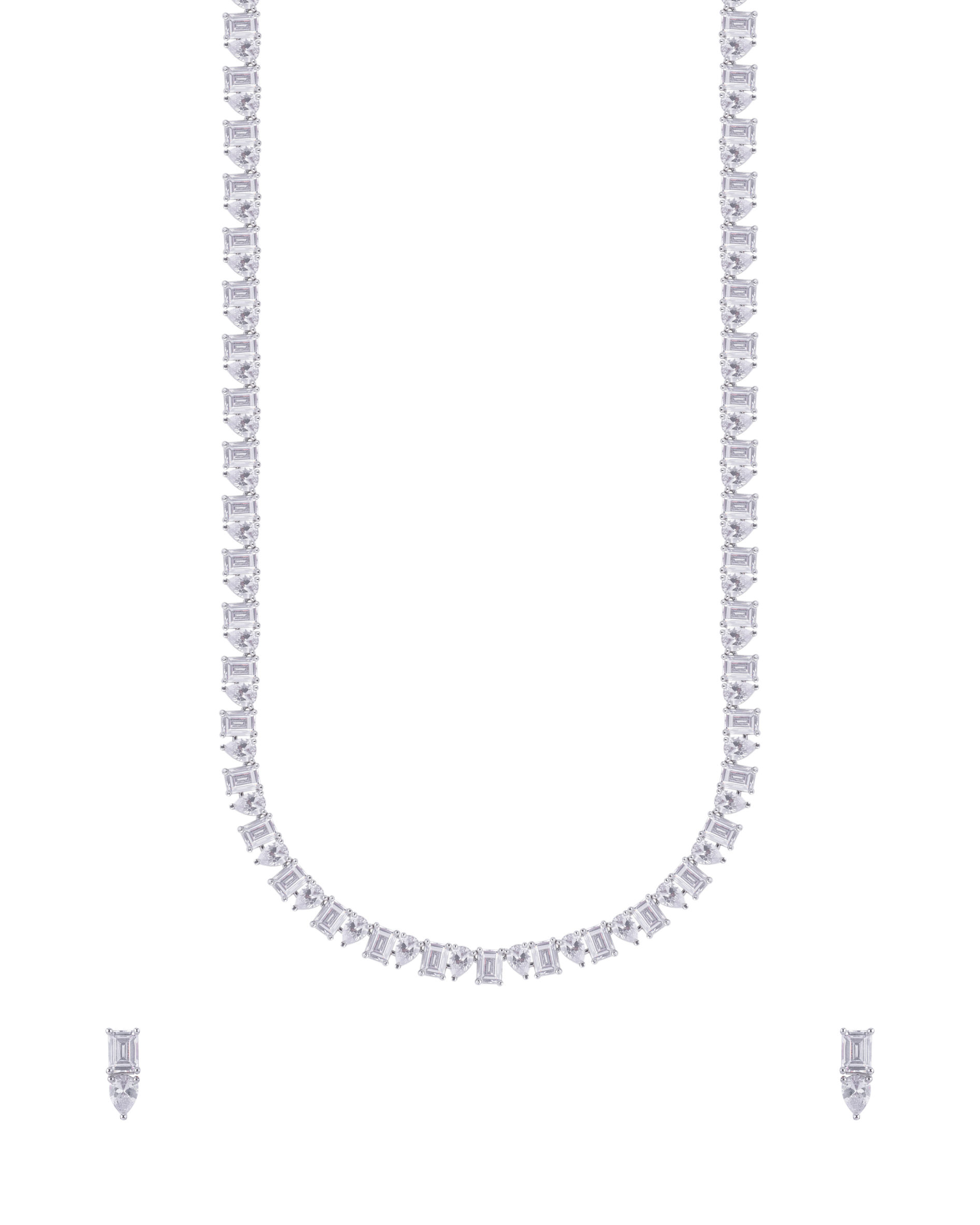 Elevate your elegance with our Multi-shape Solitaire Tennis Necklace Set, a stunning blend of timeless sophistication and contemporary design. This exquisite set features meticulously cut solitaires in various shapes, including round, princess, and pear, all set in a sleek, high-quality finish. The brilliance of each stone is carefully highlighted, making this set perfect for both grand occasions and everyday luxury.