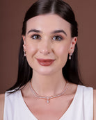 Introducing the Naisha Rose Gold Drop Necklace Set, an exquisite piece of jewelry that embodies timeless elegance and modern sophistication. This stunning necklace set is designed to elevate your style and add a touch of glamour to any occasion.