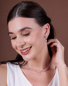 Crafted with meticulous attention to detail, the Naisha Rose Gold Drop Necklace Set exudes quality and sophistication. The rose gold plating adds a warm and radiant glow, enhancing the overall allure of the set.