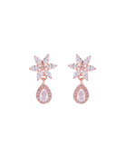 The centerpiece of this set is the captivating drop pendant, delicately crafted with precision and adorned with shimmering crystals. The pendant gracefully hangs from a dainty rose gold chain, creating a mesmerizing focal point that draws attention and complements your neckline.