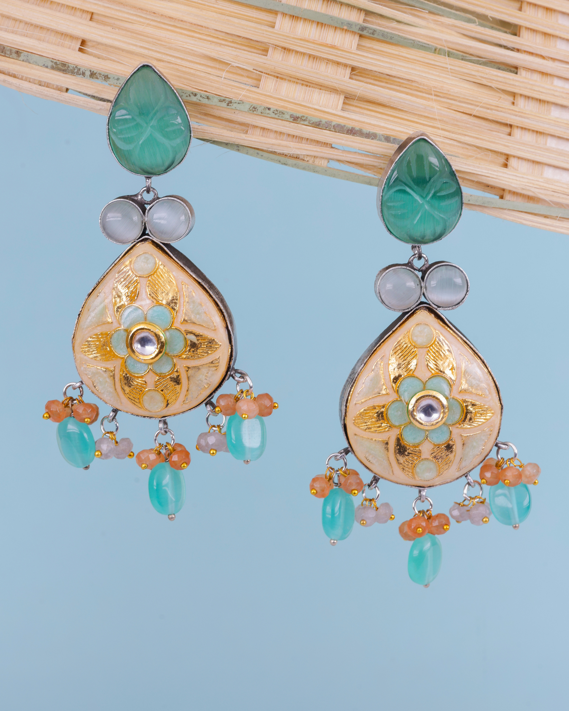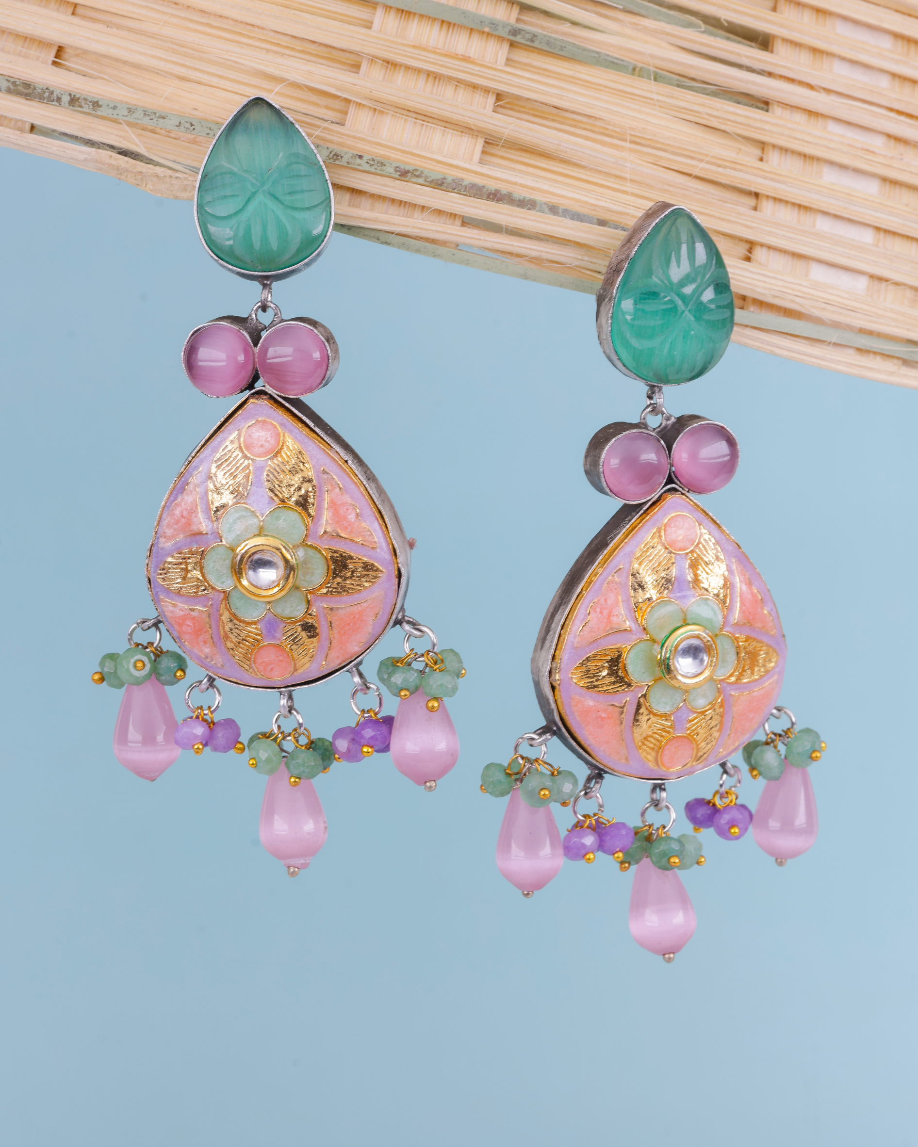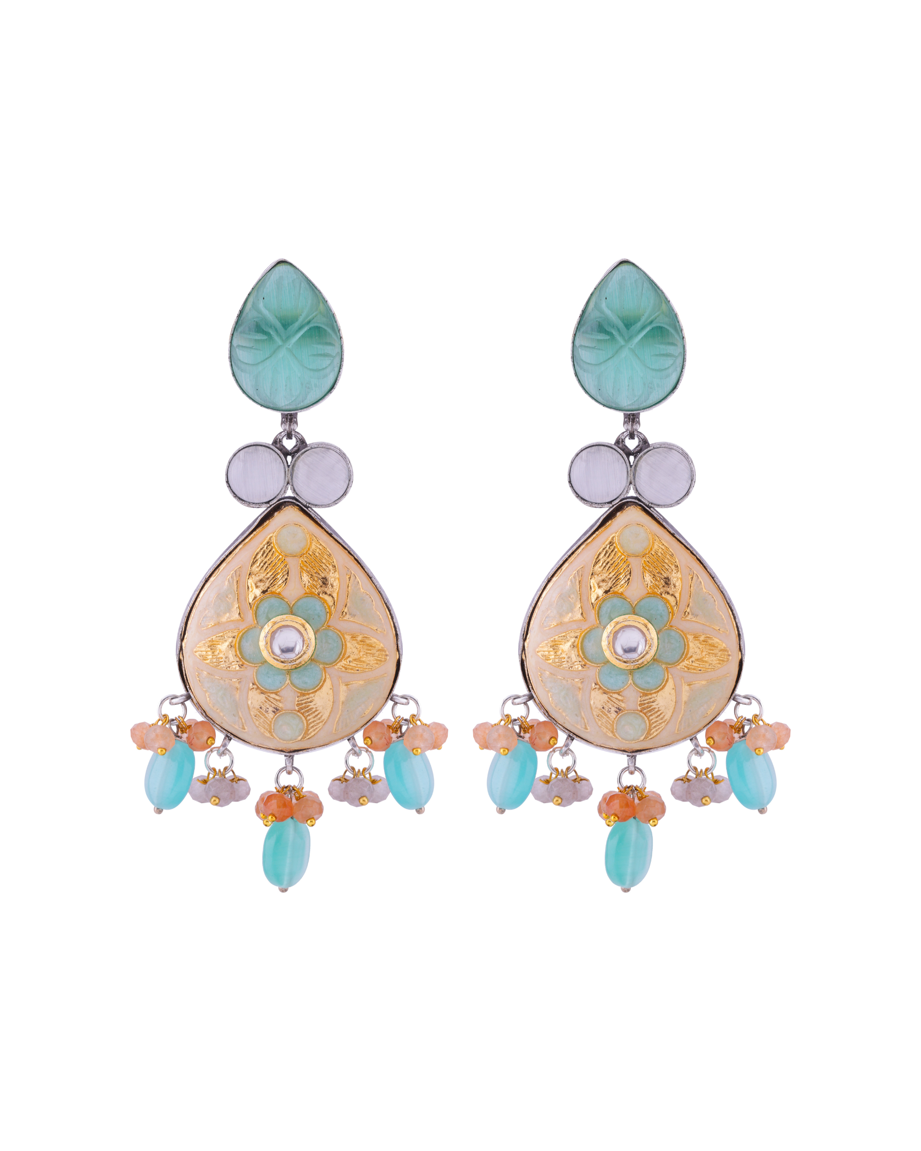 Oxidised Meenakari Multi Stone Earrings