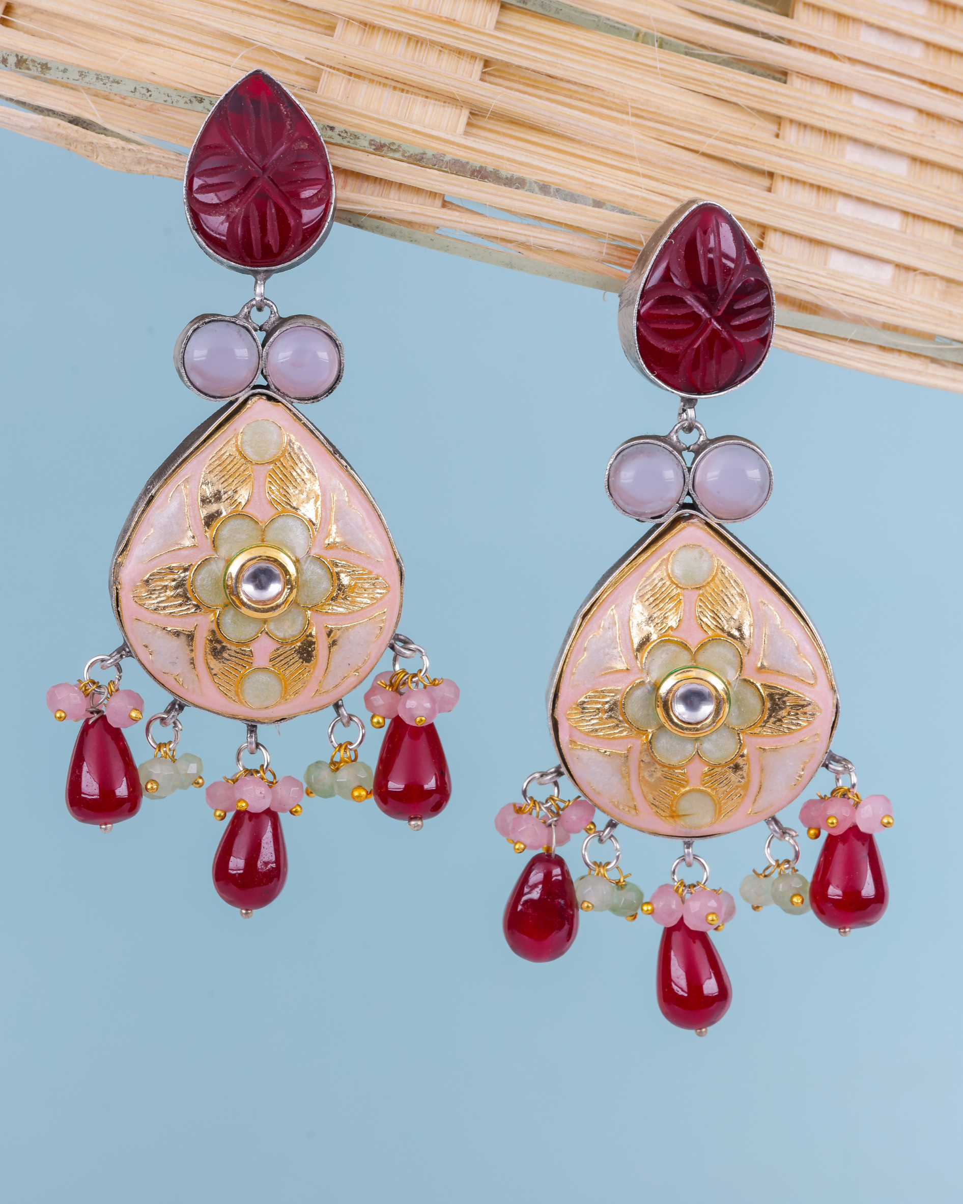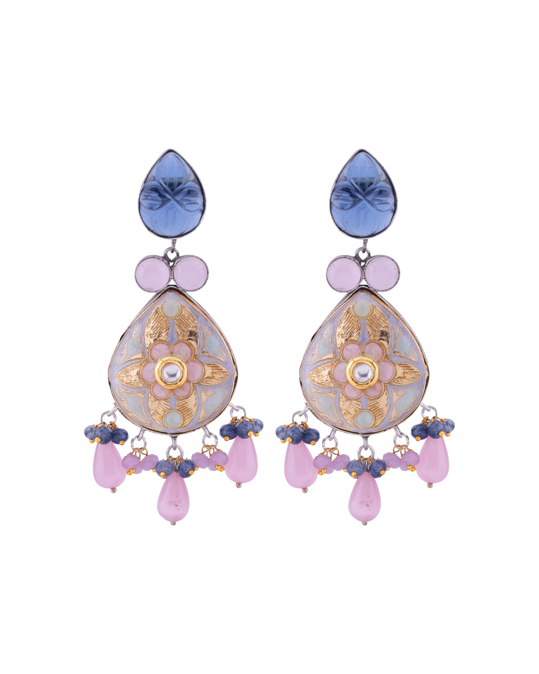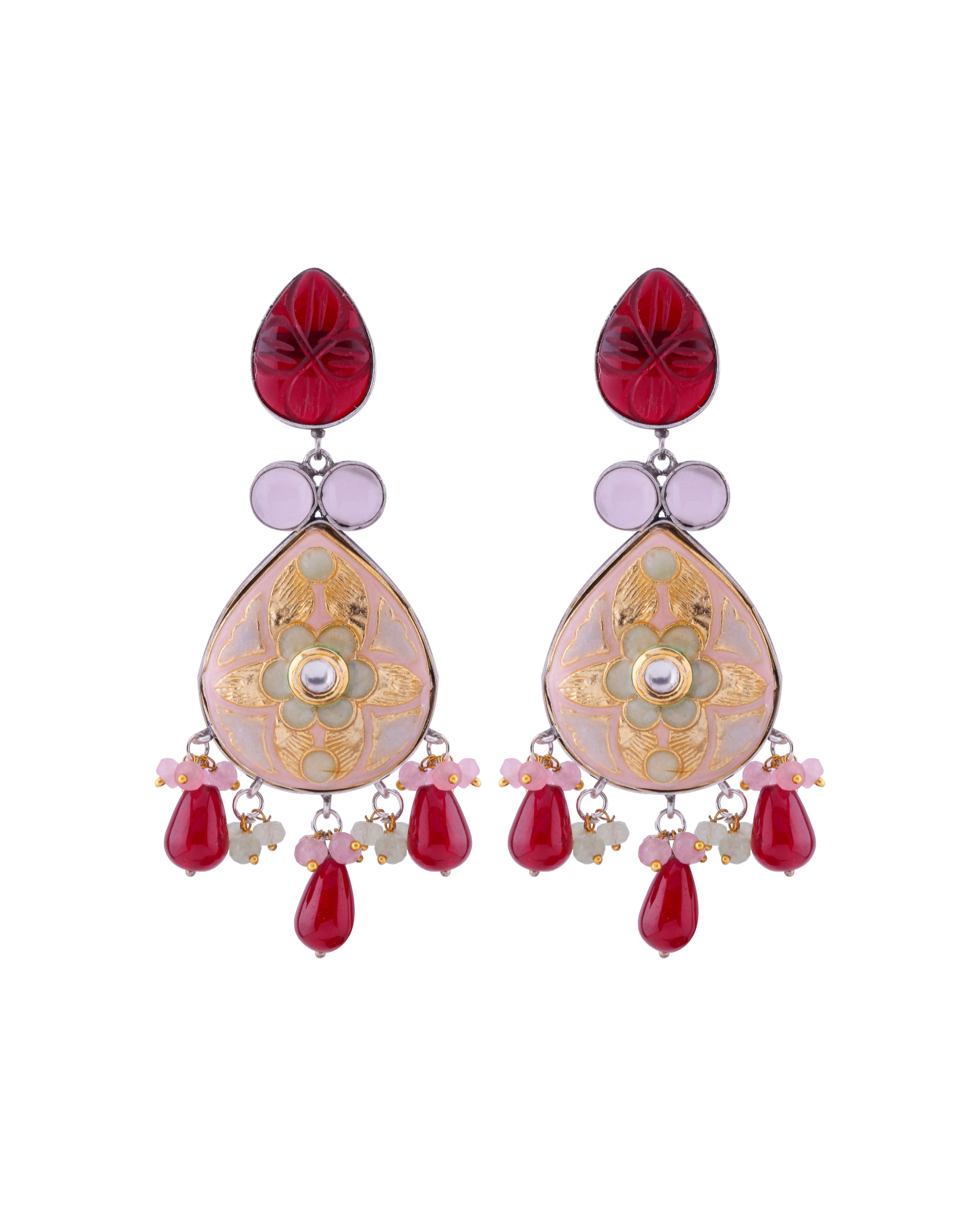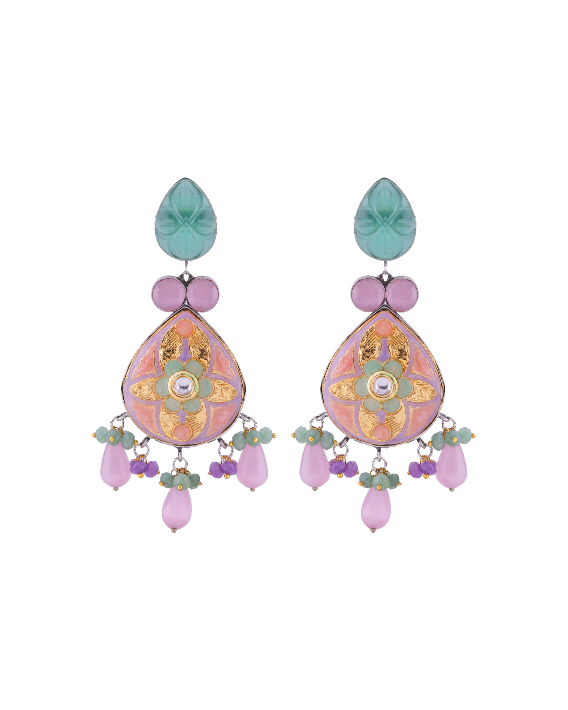 Oxidised Meenakari Multi Stone Earrings