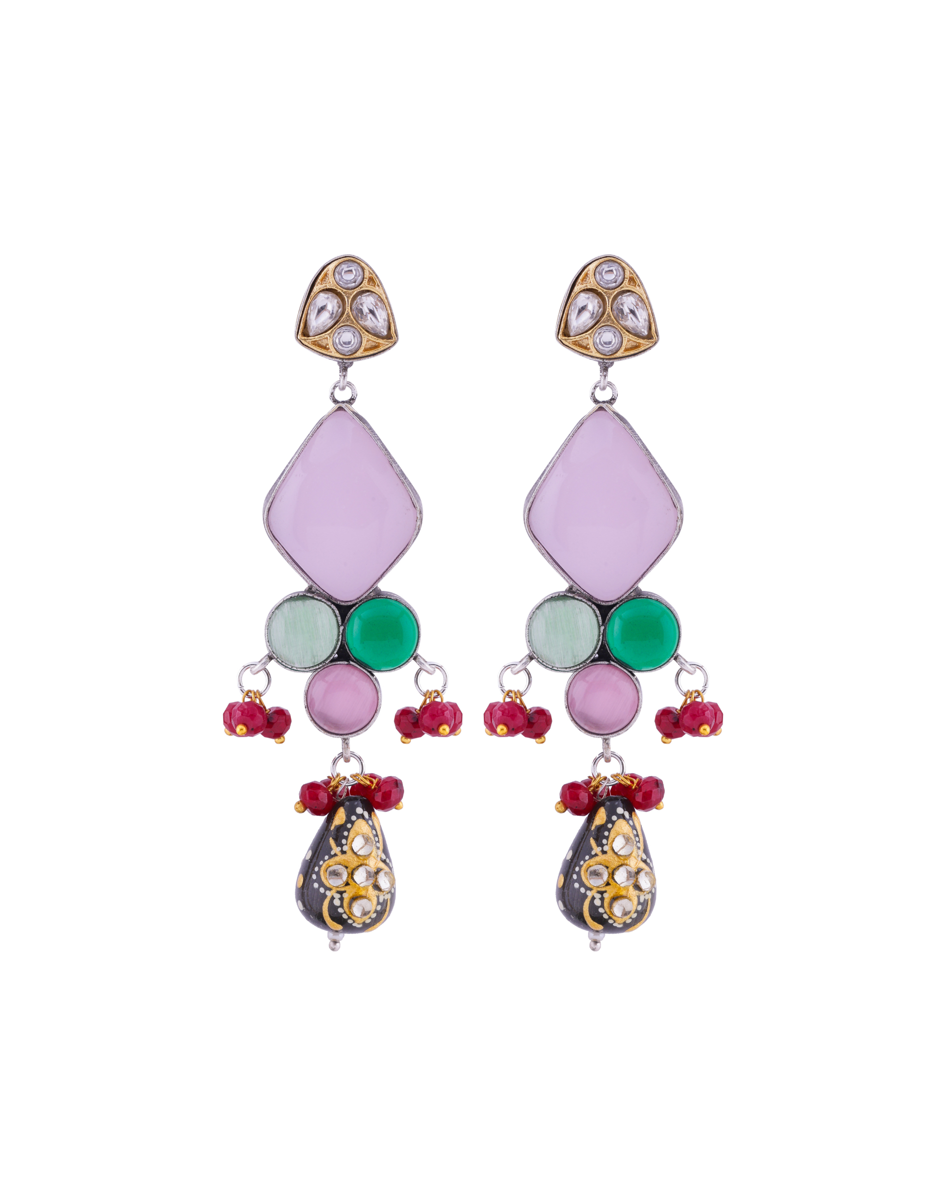 Oxidised Mulitcolour Stone Dangler Earrings
