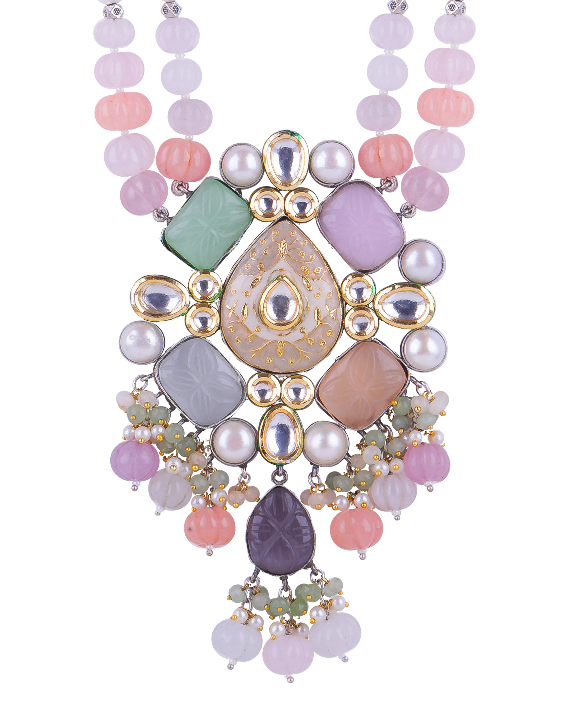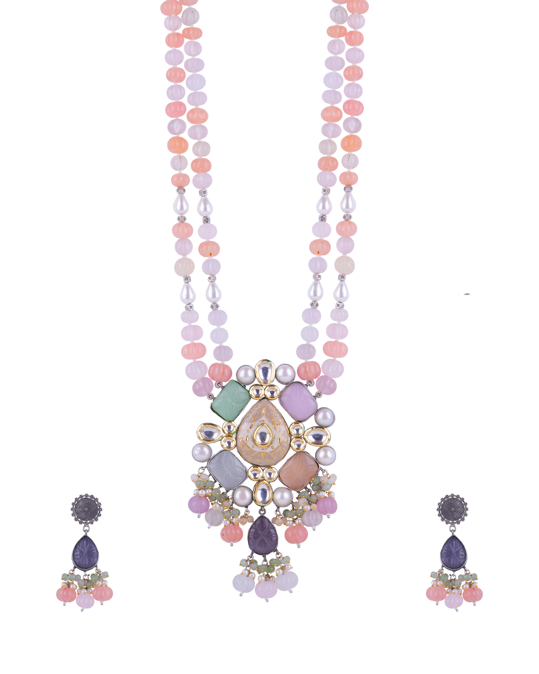 Pastel Beads Maala Pendant Long Necklace Set