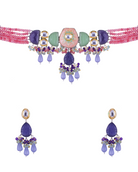 Pastel Pink & Purple Meenakari Choker Necklace Set