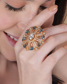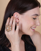 The Pastel Stone Gold Plated Kundan Ring is a true reflection of refined elegance and timeless beauty. It effortlessly adds a touch of sophistication to any outfit, be it casual or formal. Whether you're attending a wedding, a festive celebration, or simply want to elevate your everyday style, this ring is sure to captivate attention and receive compliments.