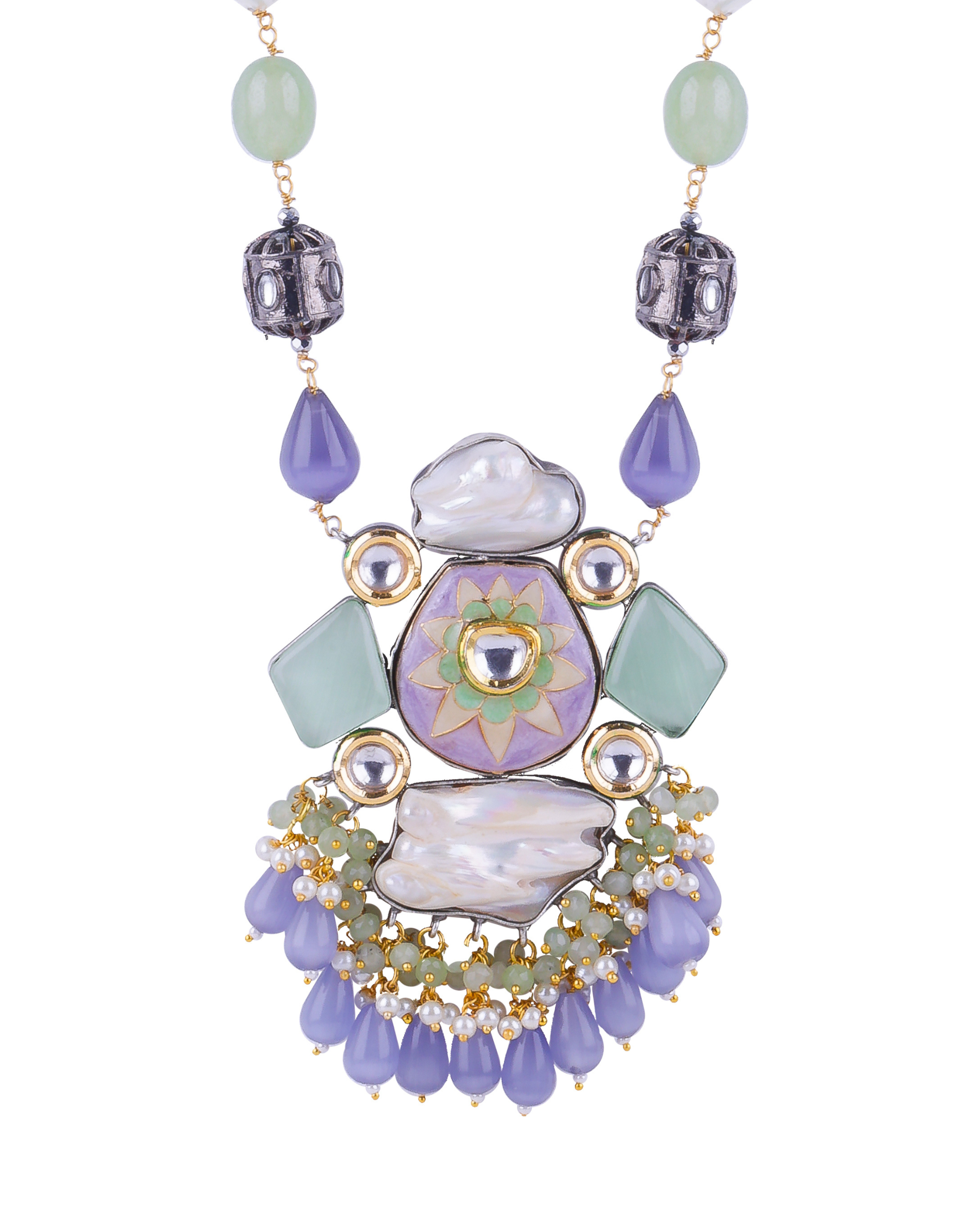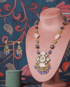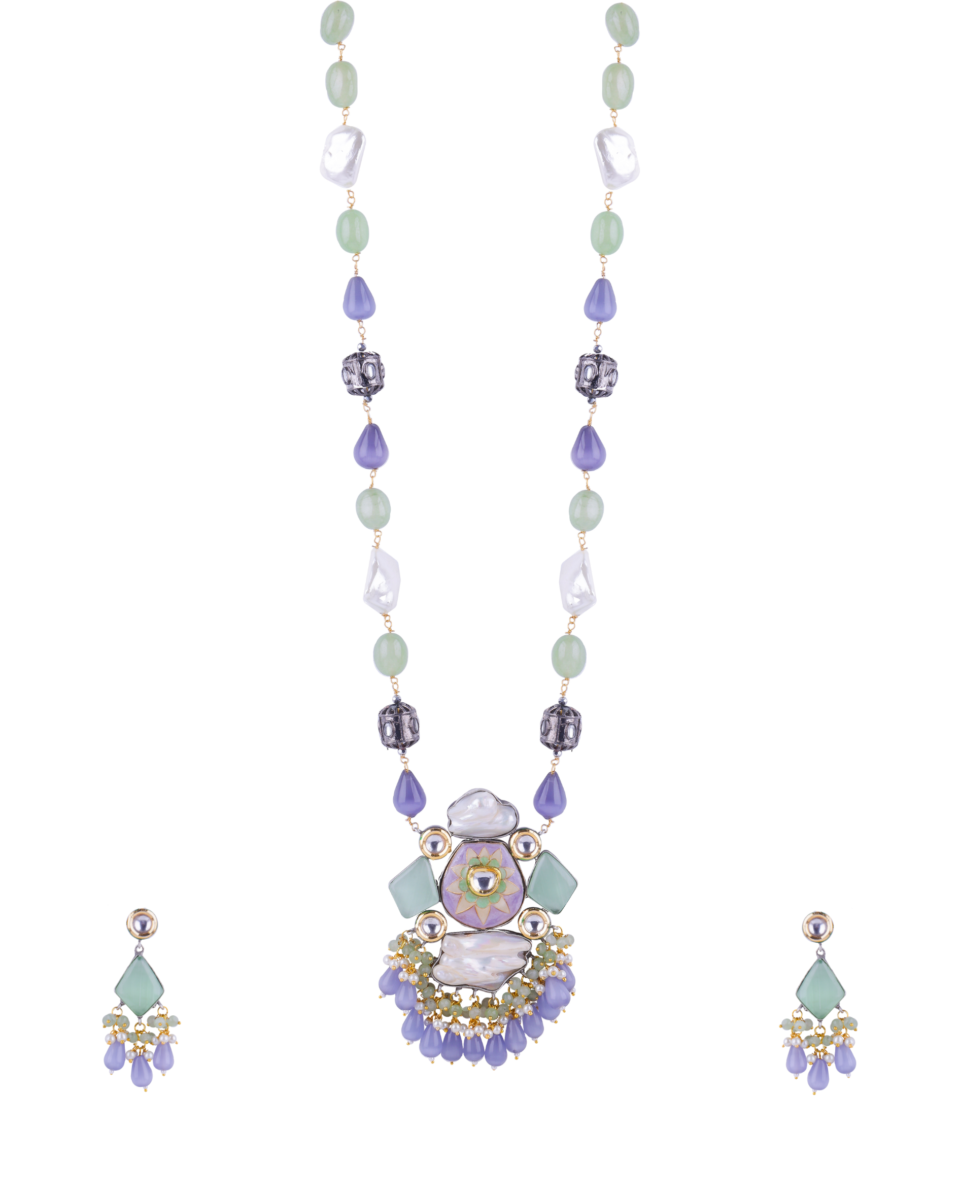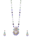 Pastel Stone & Pearl Pendant Long Necklace Set