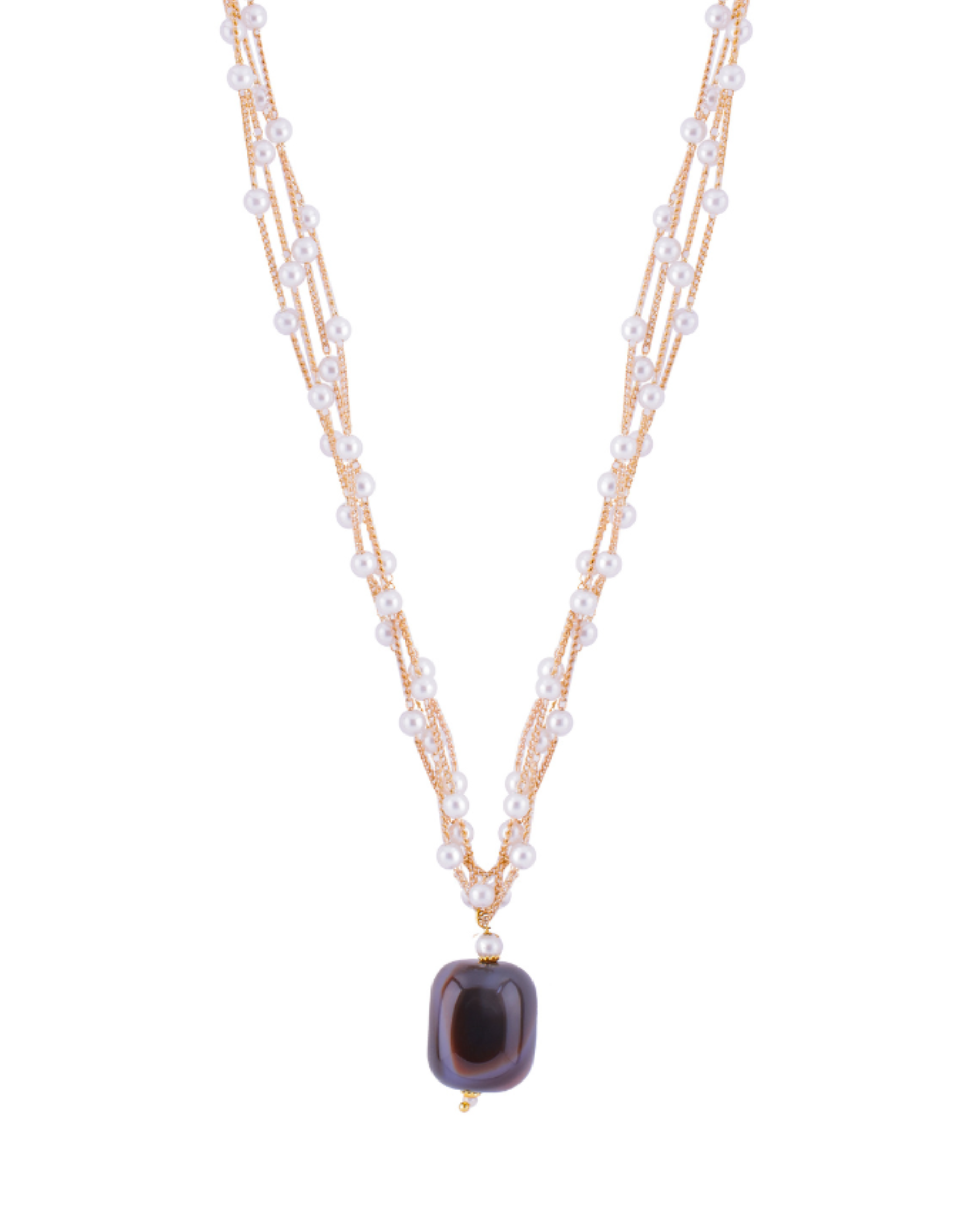 Introducing our Pearl Embellished Chain with Stone Drop, an exquisite and elegant necklace that exudes timeless sophistication. This stunning piece features a delicate chain adorned with lustrous pearls, adding a touch of classic charm to any outfit.