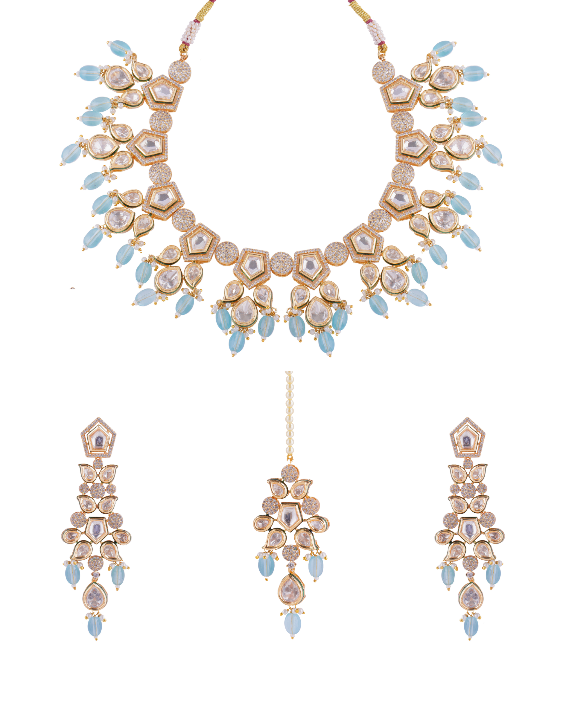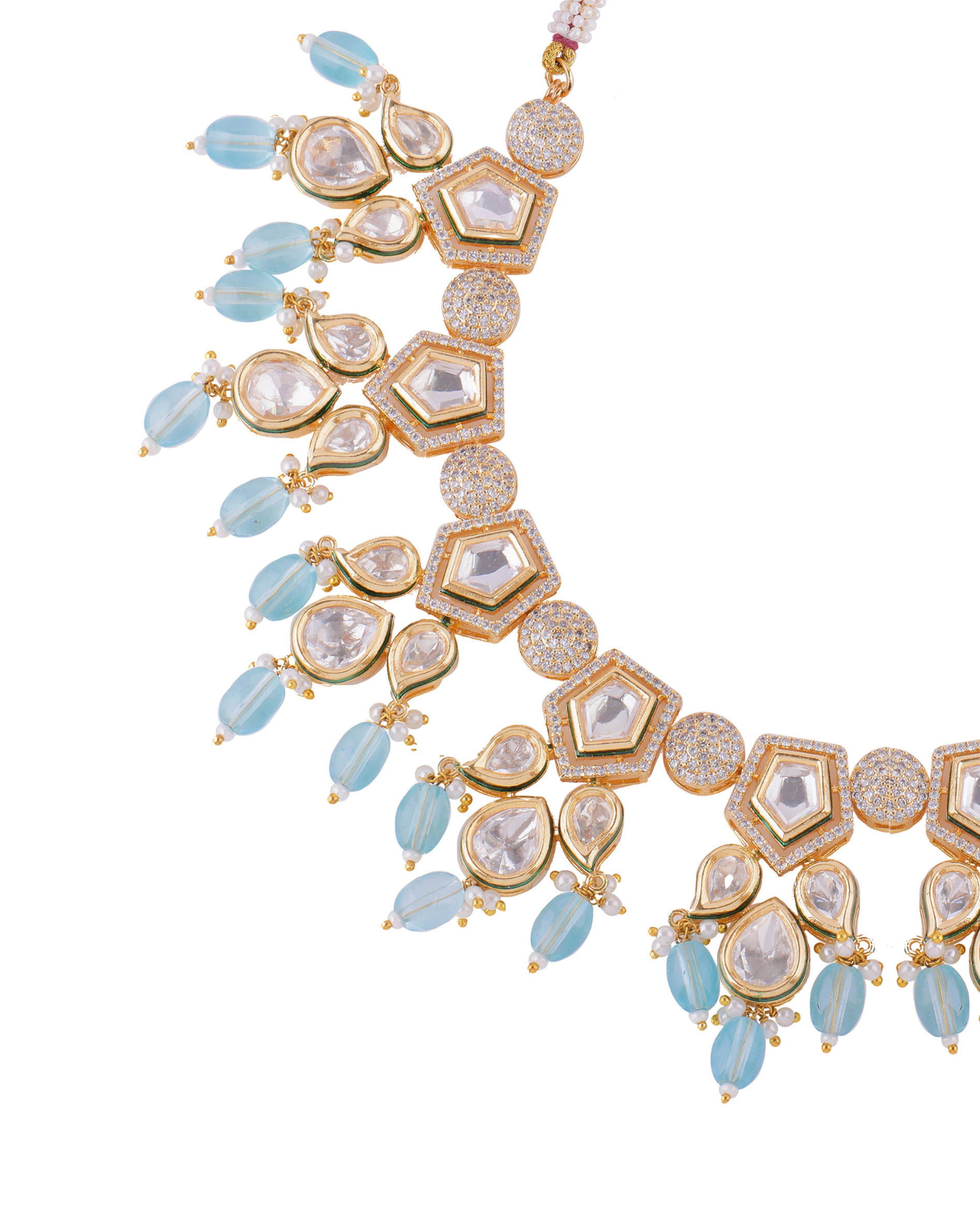 Radhika Kundan Zirconia Pastel Beads Bridal Necklace Set