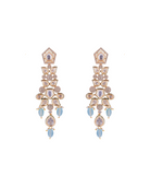 Completing the set are matching earrings that mirror the beauty of the necklace. They feature the same exquisite Kundan work and glistening Zirconia stones, creating a symphony of elegance. The earrings dangle gracefully, framing the face with a touch of radiance and enhancing the bride's natural beauty.