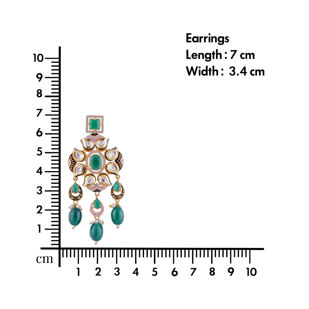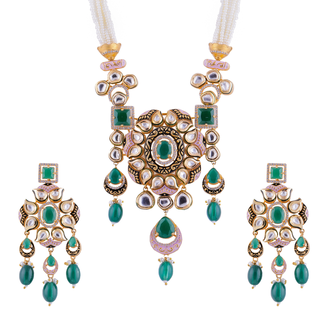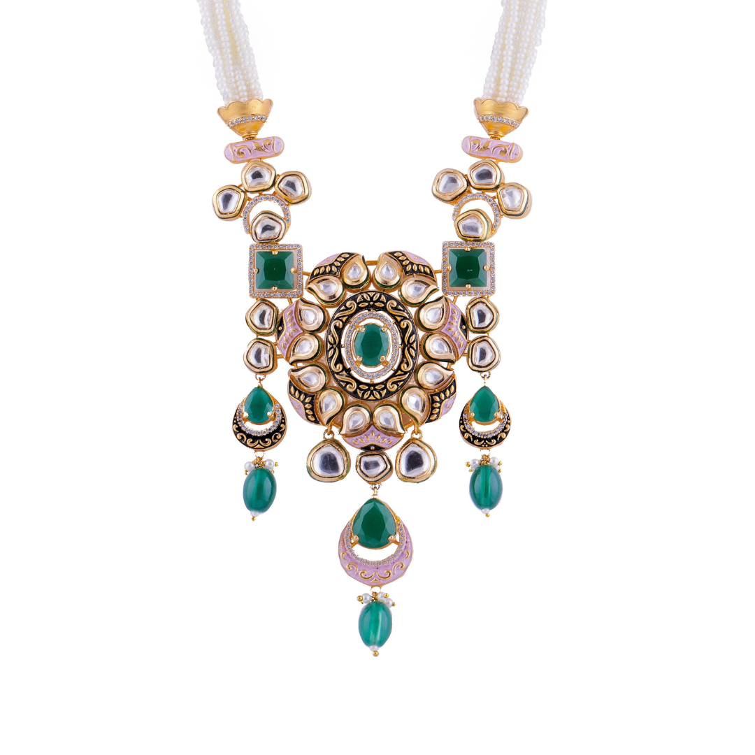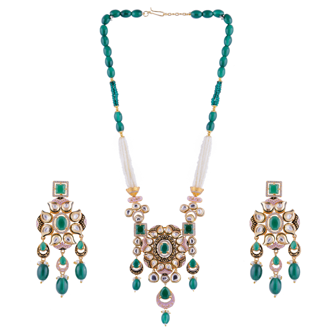 Crafted with a meticulous attention to detail, the Radhika Traditional Antique Meenakari Kundan Pendant Set is a testament to the skill and artistry of Indian jewellery craftsmanship. It is a perfect accessory for special occasions, weddings, or cultural festivities, where you can showcase your appreciation for tradition and beauty.