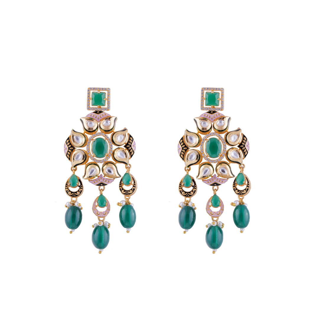 Introducing the Radhika Traditional Antique Meenakari Kundan Pendant Set, a true masterpiece that encapsulates the essence of Indian artistry and cultural heritage. This exquisite pendant set is a celebration of traditional craftsmanship and timeless elegance.