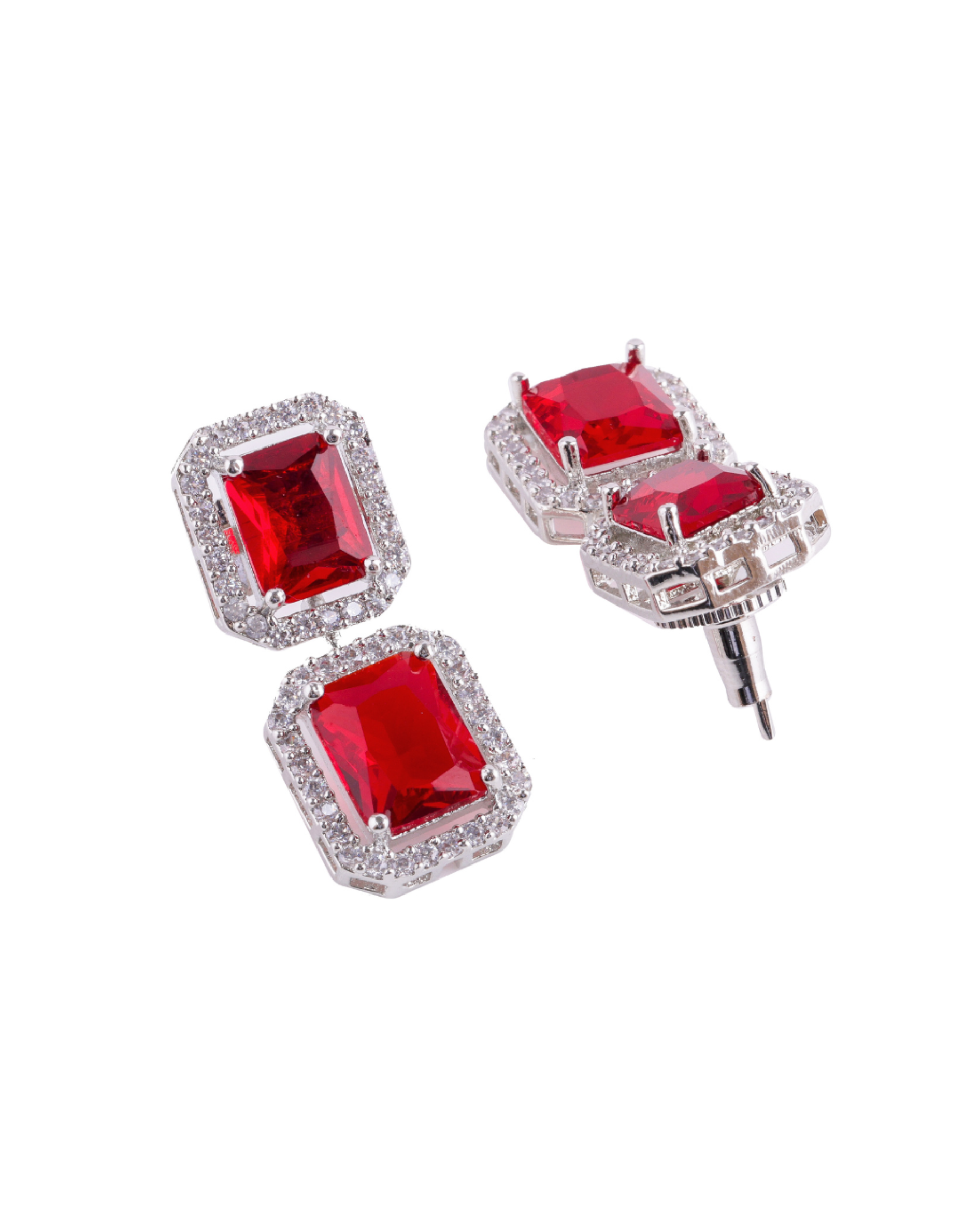 To complete the set, matching earrings are included. They feature a smaller version of the rectangular octo design, mirroring the pendant's aesthetic. The earrings are lightweight and comfortable to wear, allowing you to enjoy them all day or night without any discomfort.