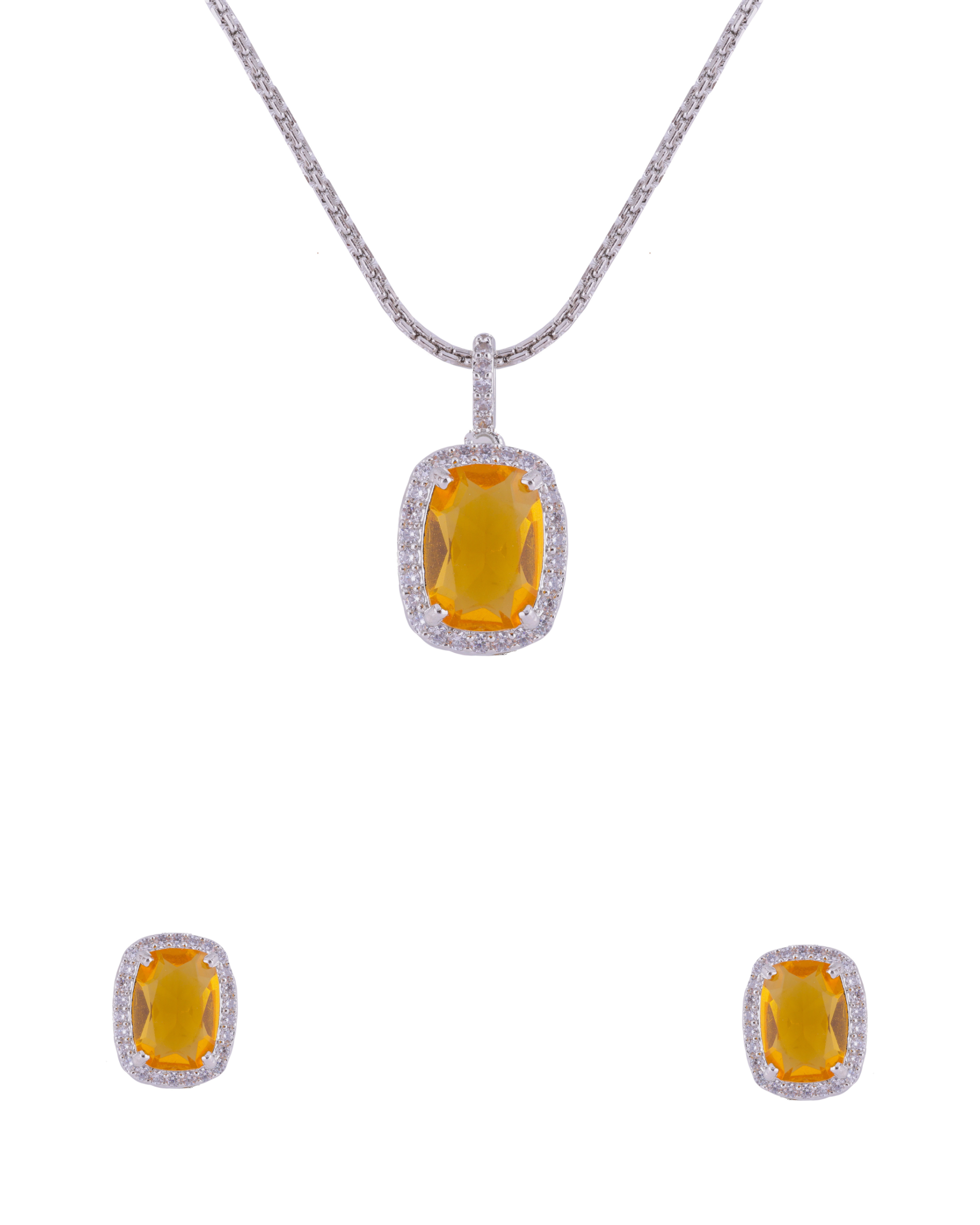 Introducing our elegant rectangular stone pendant set, a beautiful addition to any jewellery collection. This set features a high-quality rectangular stone, set in a durable and stylish metal frame. The set includes a matching chain and a pair of coordinating stud earrings, each featuring the same high-quality rectangular stone in a coordinating metal frame.