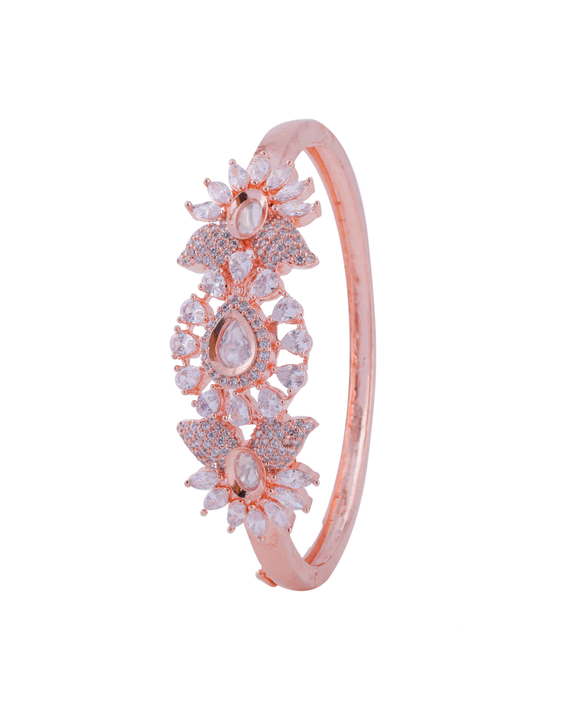 Indulge in the timeless beauty of our Rose Gold Pear Cut Kundan Bracelet and let it become a cherished piece in your jewellery collection.