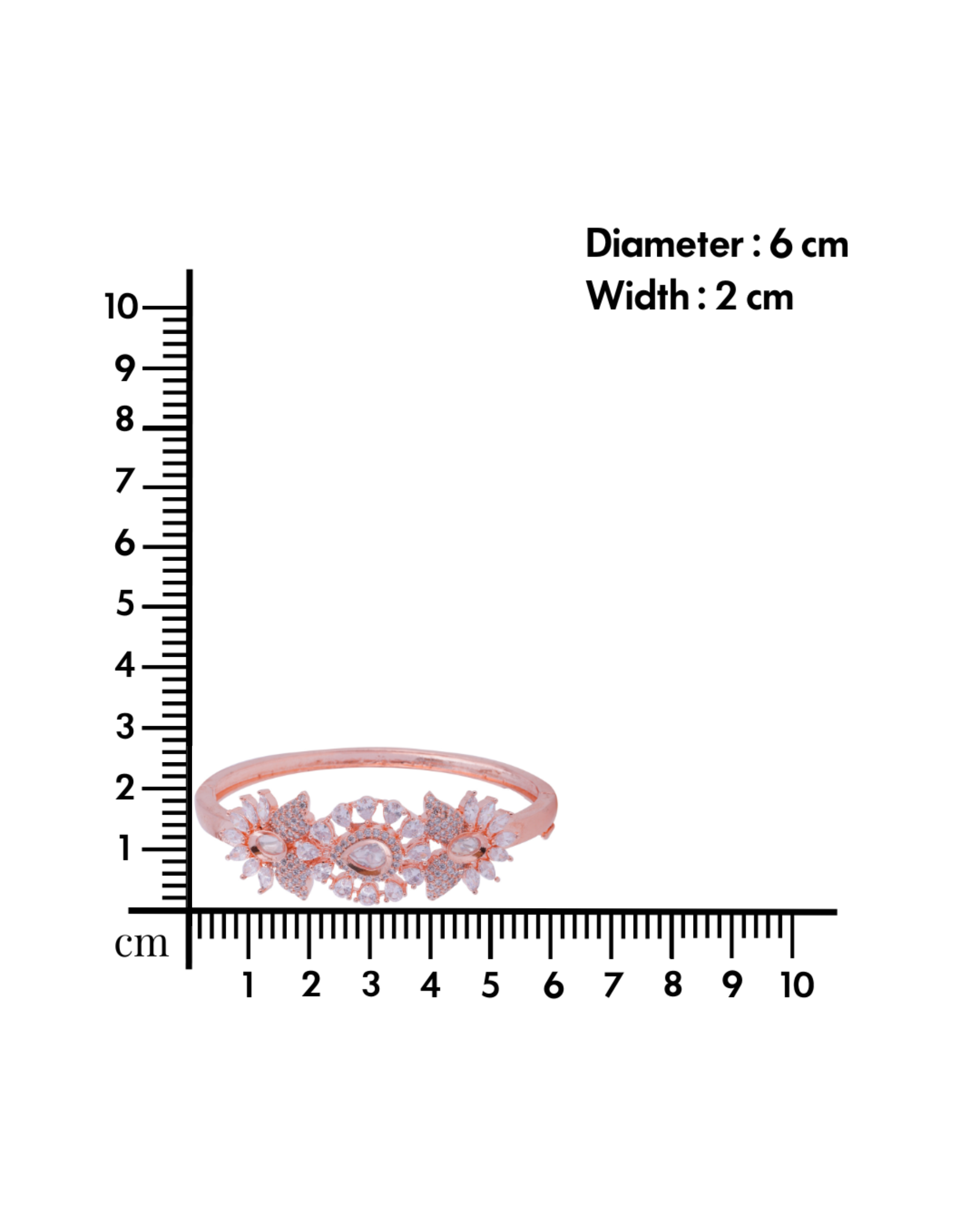 The rose gold plating adds a touch of elegance and femininity to the bracelet, complementing the lustrous Kundan stones perfectly. Each pear-cut Kundan stone is carefully selected for its exquisite shape and impeccable clarity, creating a captivating display of brilliance and sparkle.