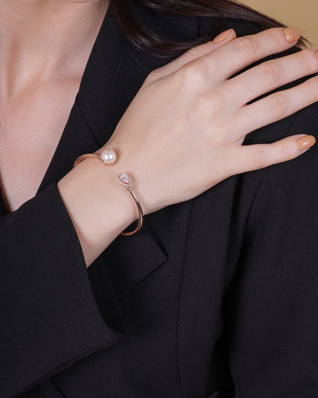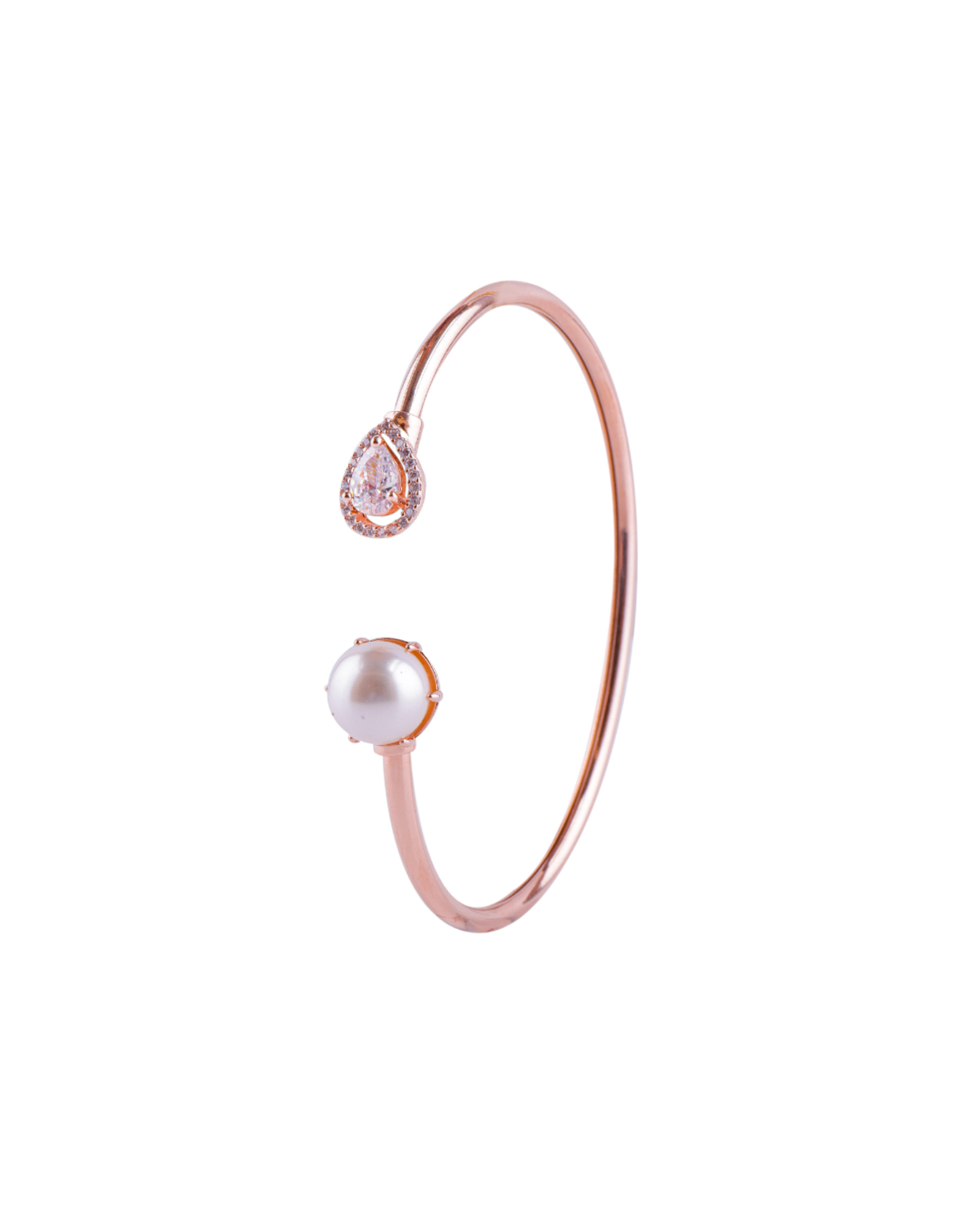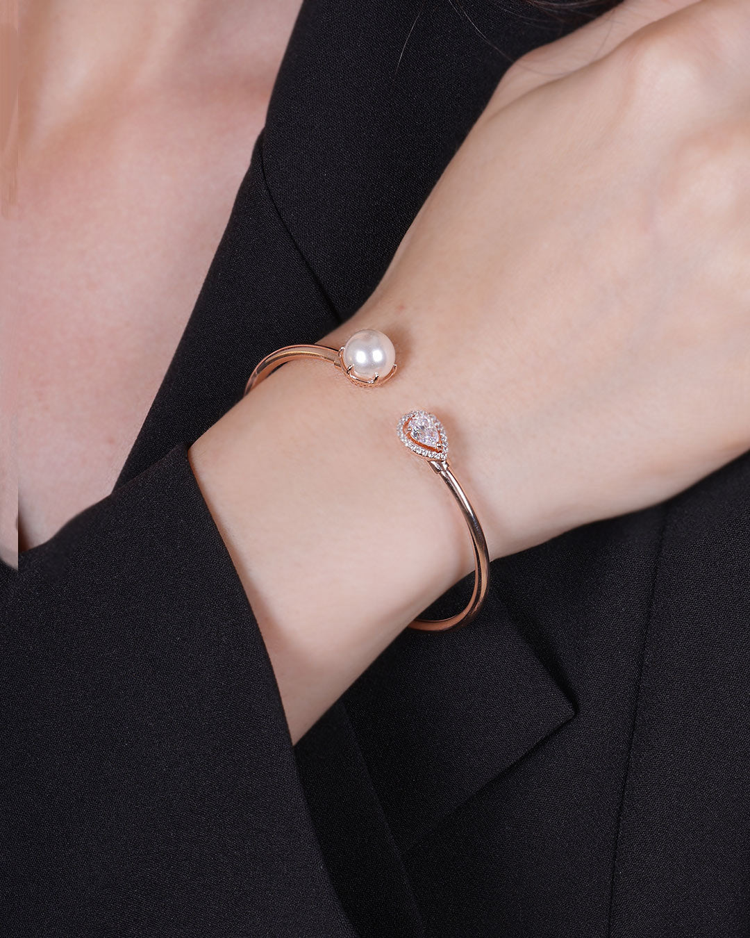 Rose Gold Pearl & Solitaire Cuff Bracelet