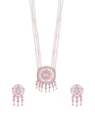 Rose Gold Plated Pearl Beads Ranihaar Necklace Set