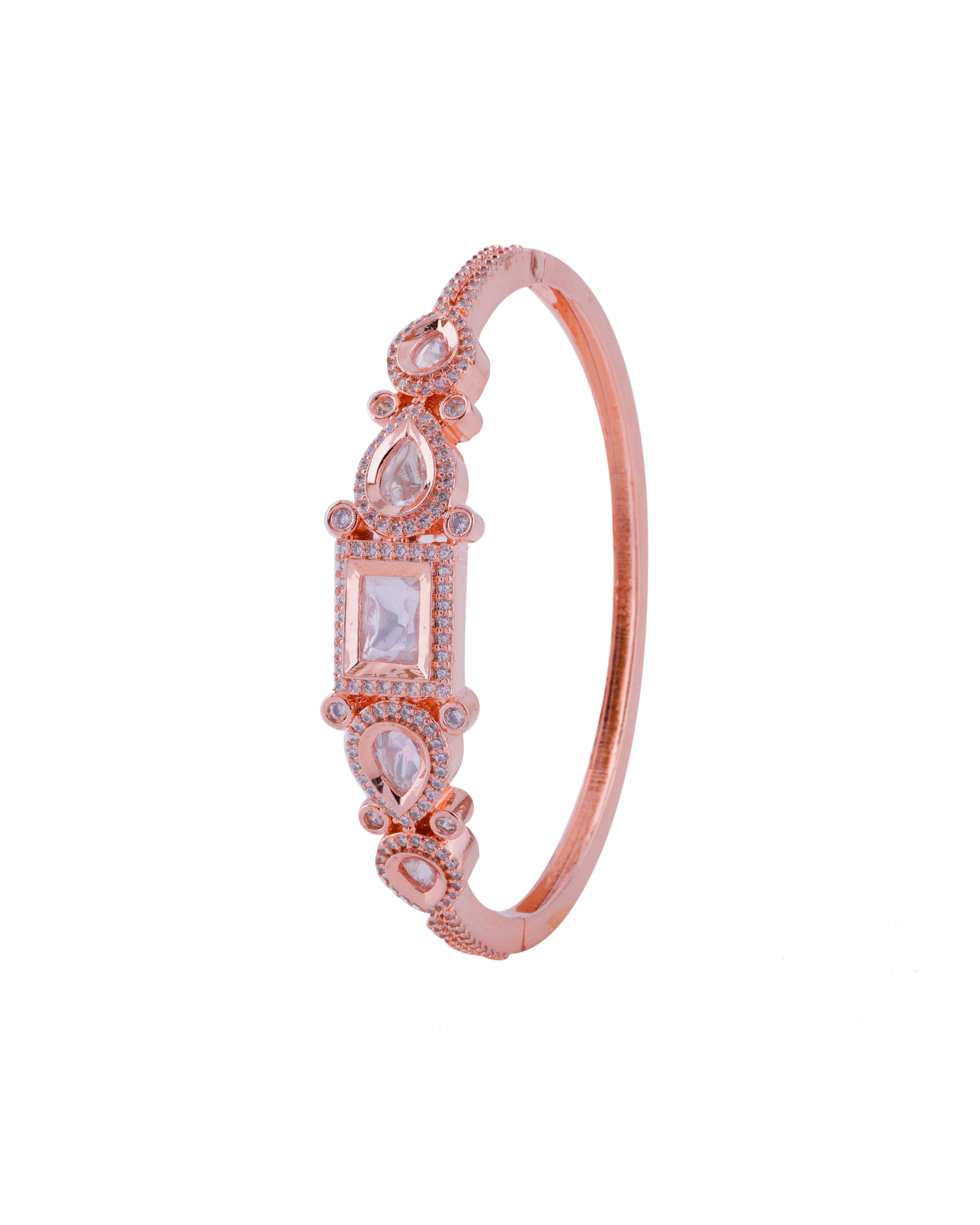 Rose Gold Square & Pear Cut Kundan Bracelet