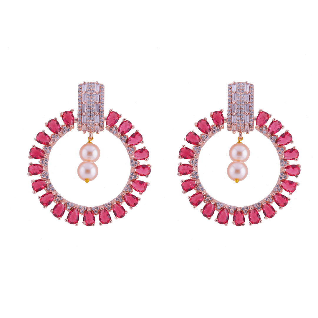 Crafted with meticulous attention to detail, these earrings are made to impress. The high-quality materials and expert craftsmanship ensure durability and long-lasting beauty. Whether you're attending a formal event or adding a touch of glamour to your everyday look, our Round Stone with Hanging Pearls Earrings are a versatile and stunning choice. Elevate your style and make a statement with these captivating earrings that exude elegance and sophistication.