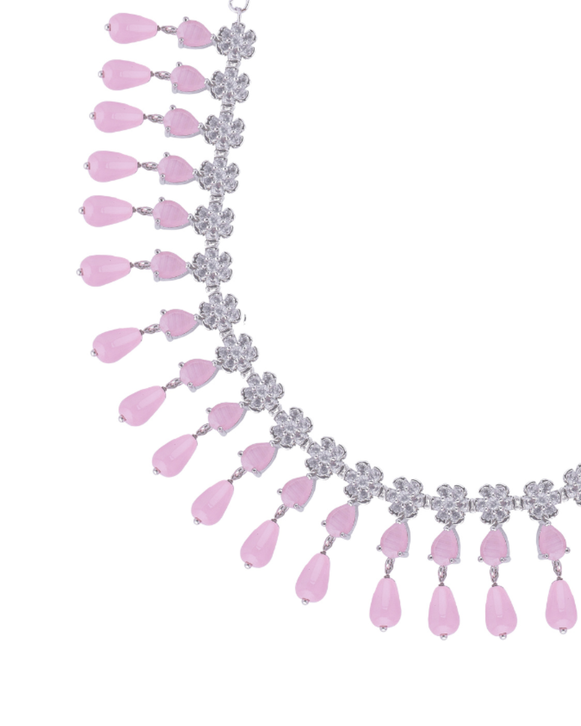 Introducing the Ruhi Silver Pink Pearl Necklace Set, a captivating piece of jewellery that embodies grace and femininity. This exquisite set is designed to elevate your style and add a touch of elegance to any ensemble.