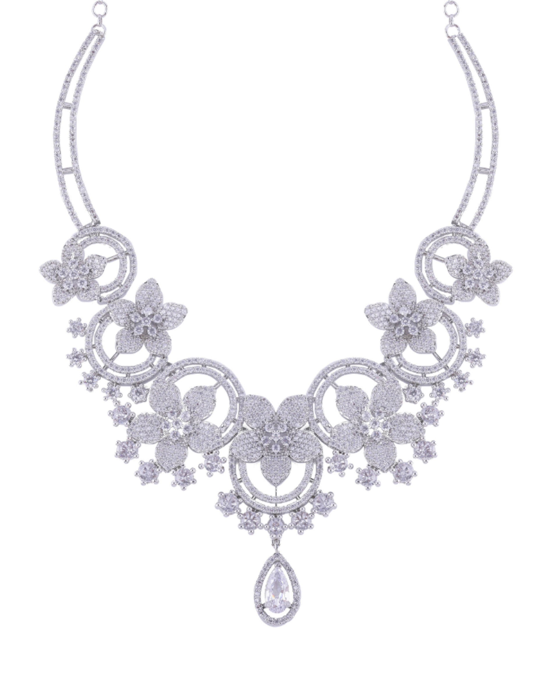 Make a statement with the Ruhi Silver Plated Floral Necklace Set and embrace your unique sense of style. Whether you're attending a special event, a wedding, or simply adding a touch of glamour to your everyday look, this necklace set is sure to make you feel confident and radiant. Add a touch of nature's beauty to your jewelry collection and let the Ruhi Silver Plated Floral Necklace Set be the centerpiece of your ensemble.