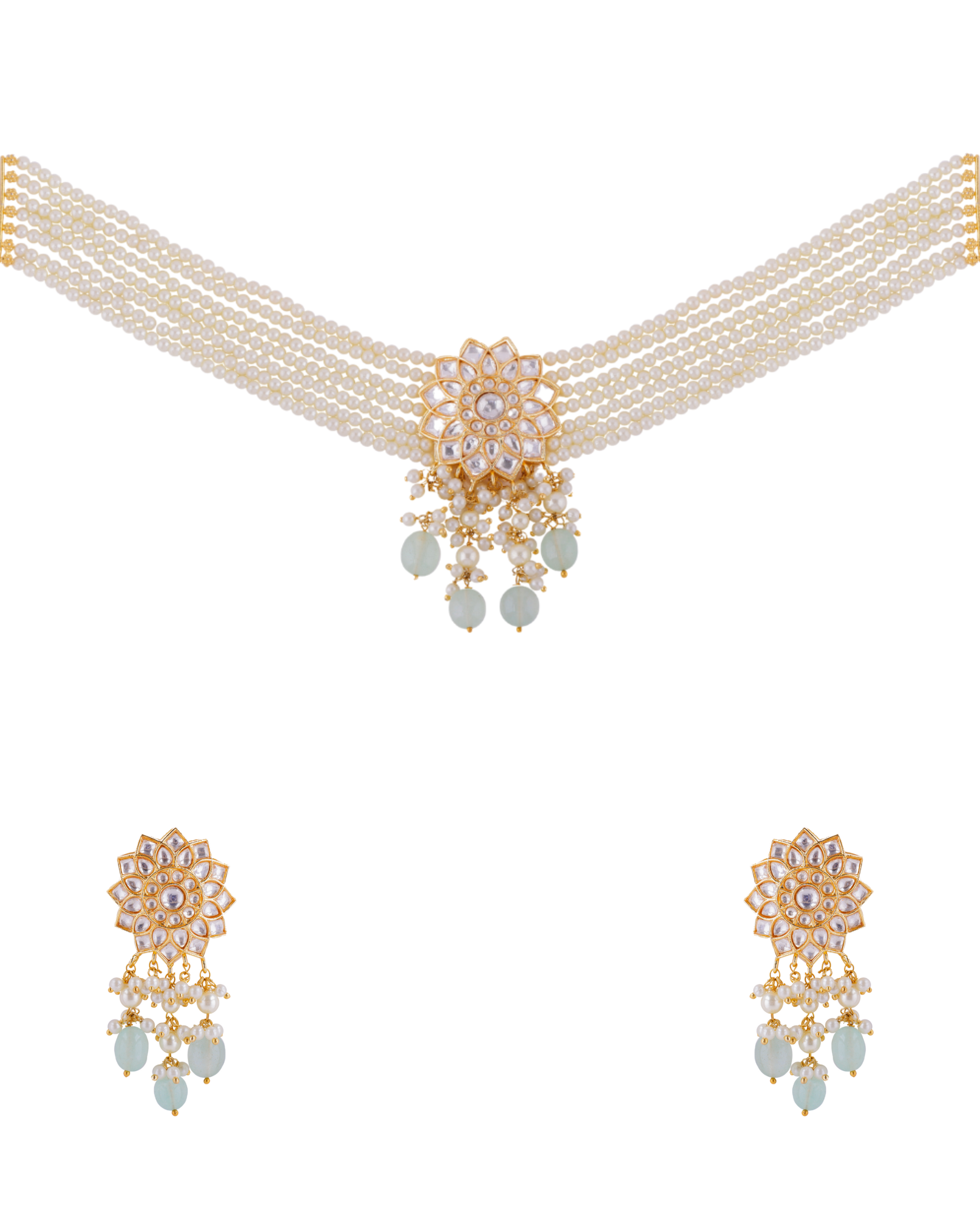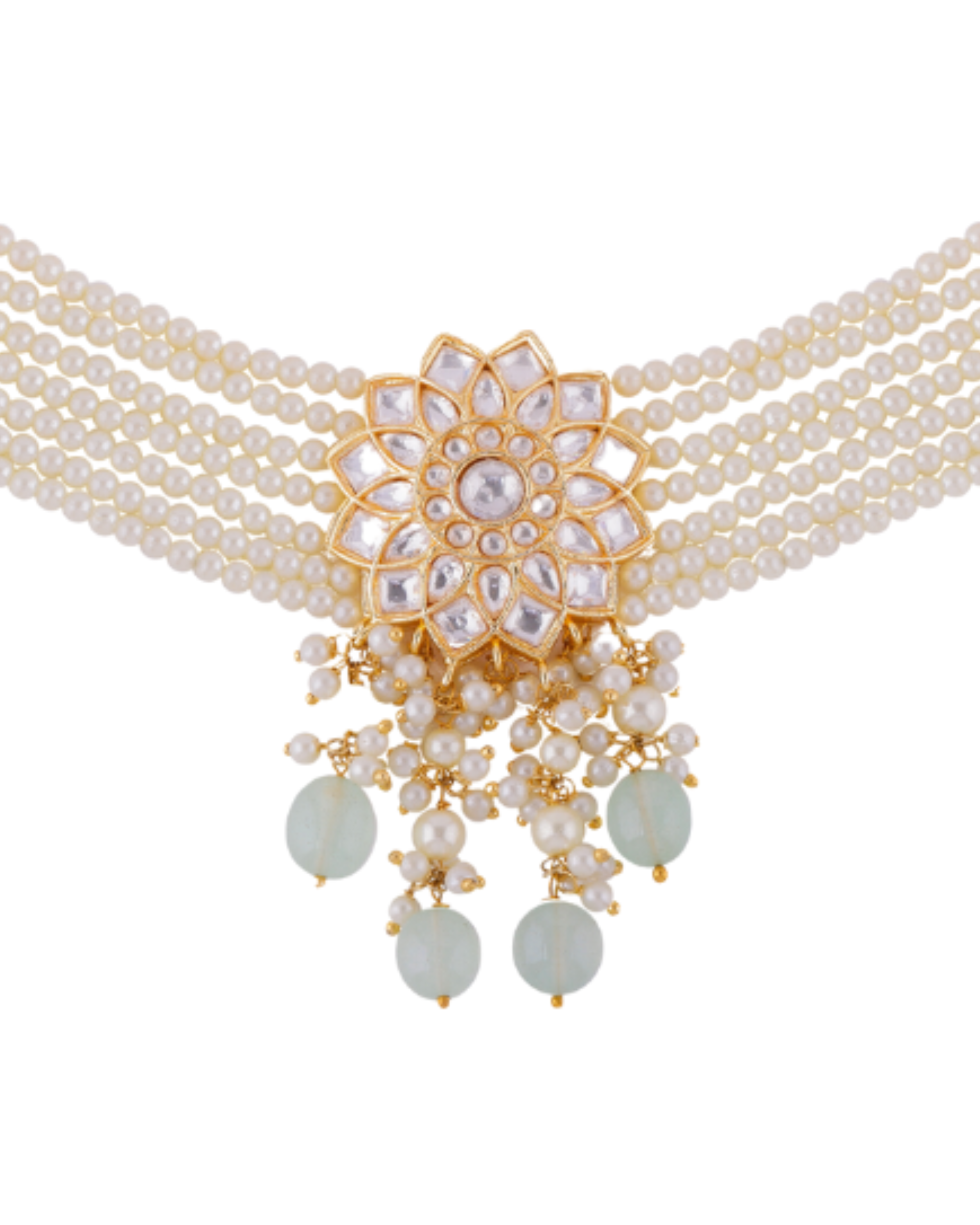 Rukmani Kundan Pearl Beaded Choker Necklace Set