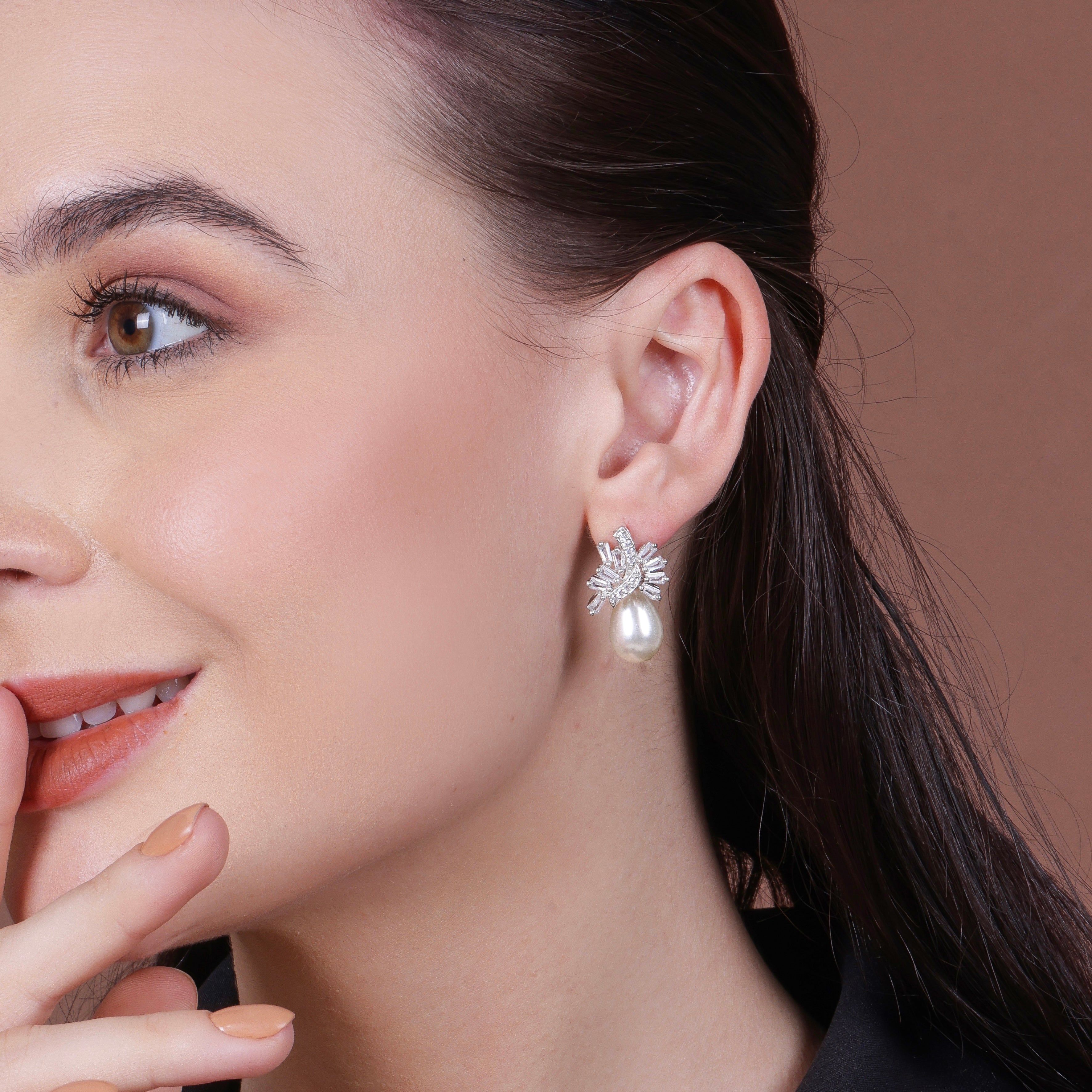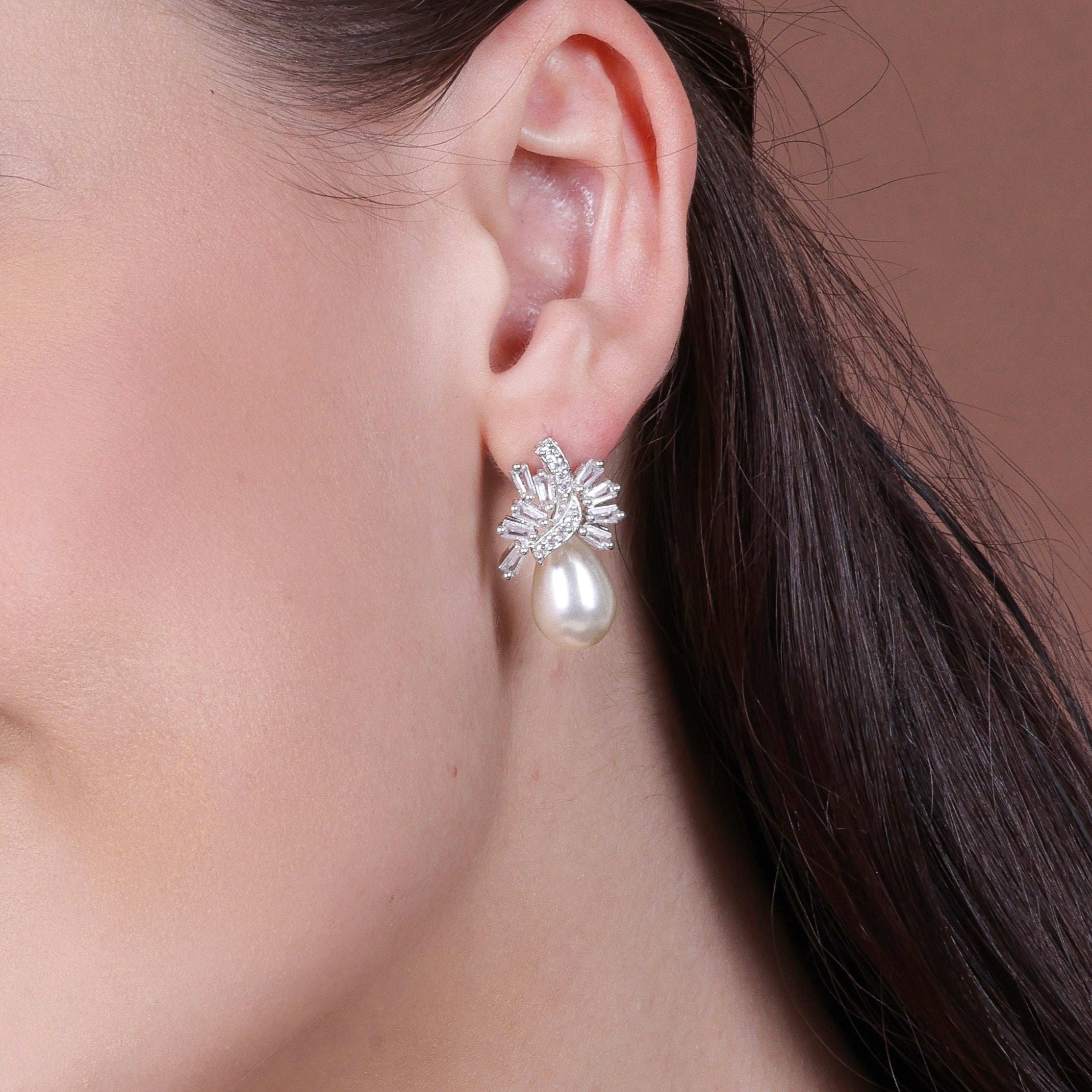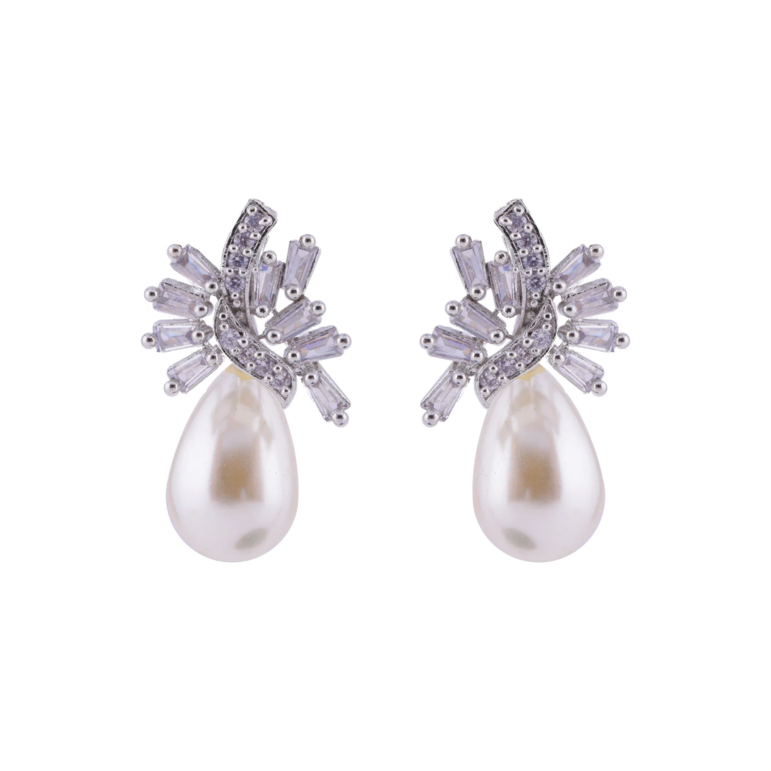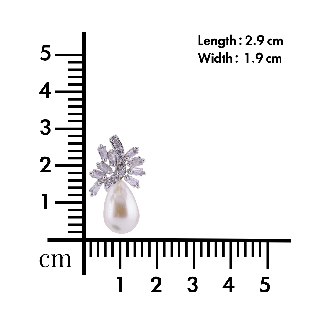 So if you're looking for a classic and timeless pair of earrings to add to your collection, these silver pearl drop CZ earrings are the perfect choice. Don't miss out on this stunning set and make them yours today!