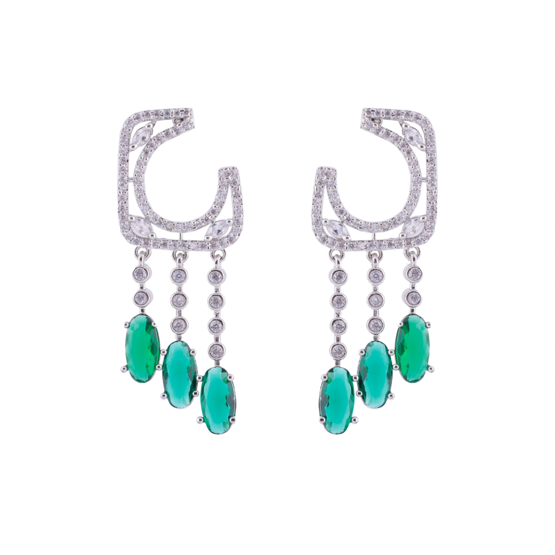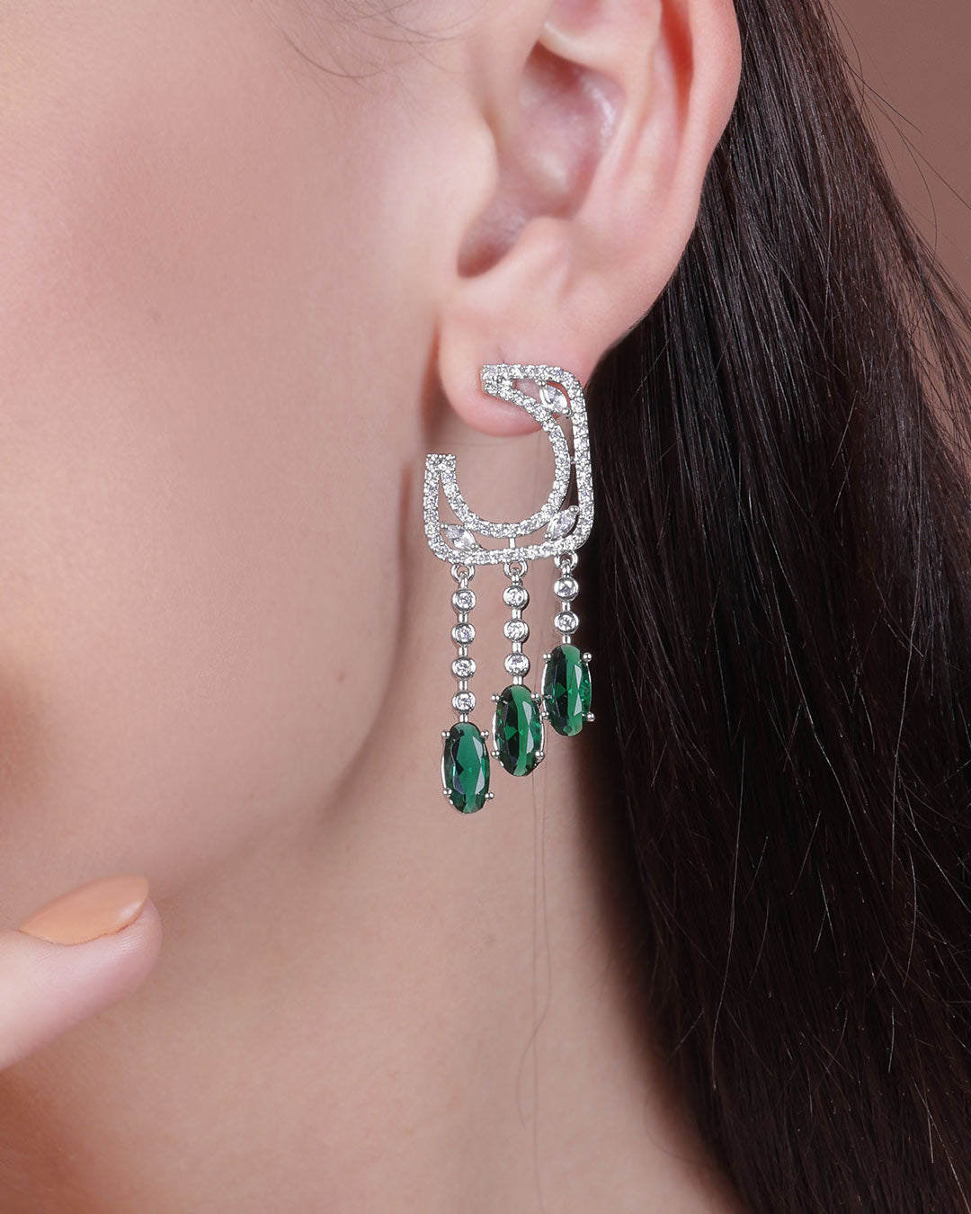 These earrings are perfect for any fashion-conscious woman who wants to make a statement with her accessories. Whether you're looking for a gift for a loved one or simply treating yourself, these Silver Plated Green Stone Designer Danglers are sure to be a hit.