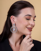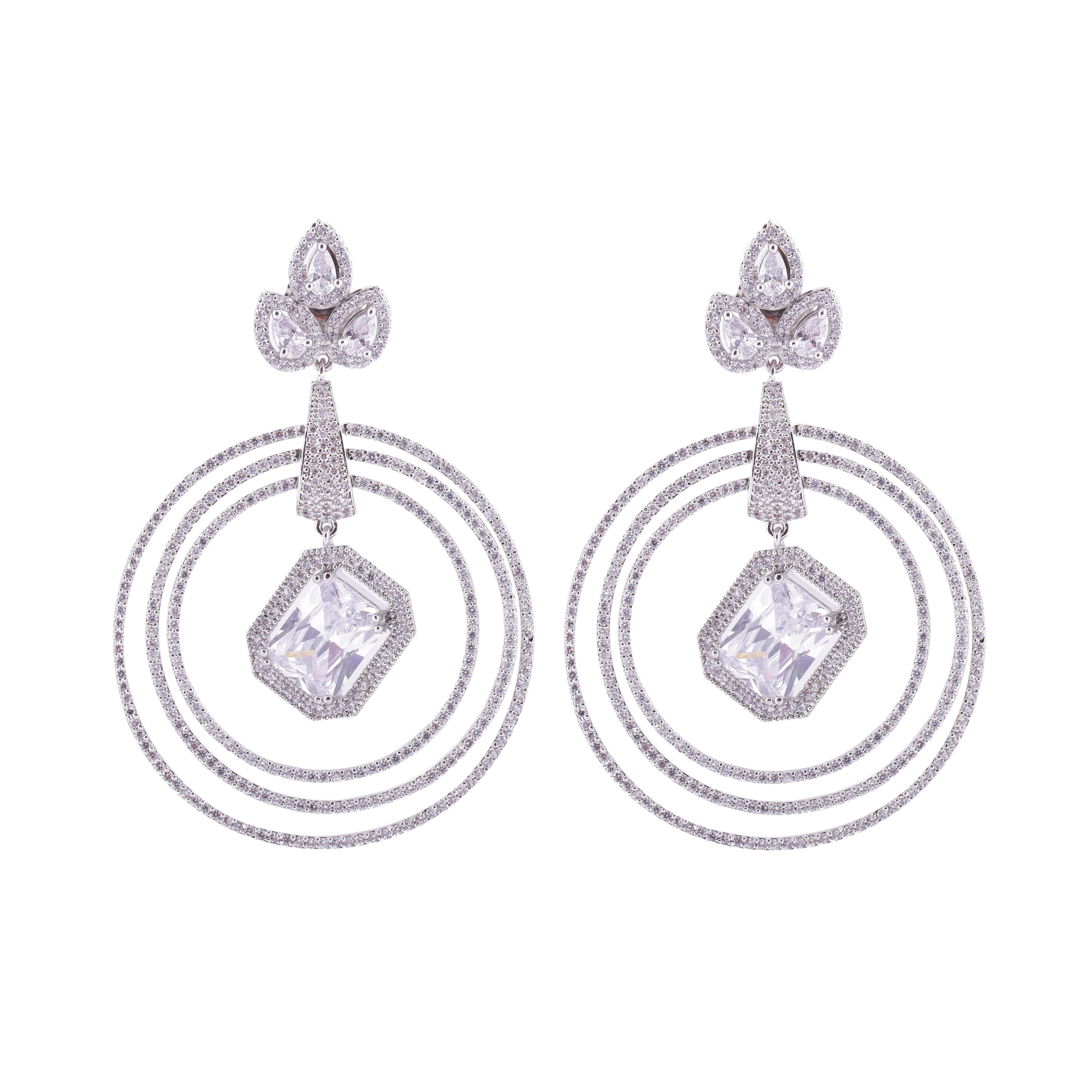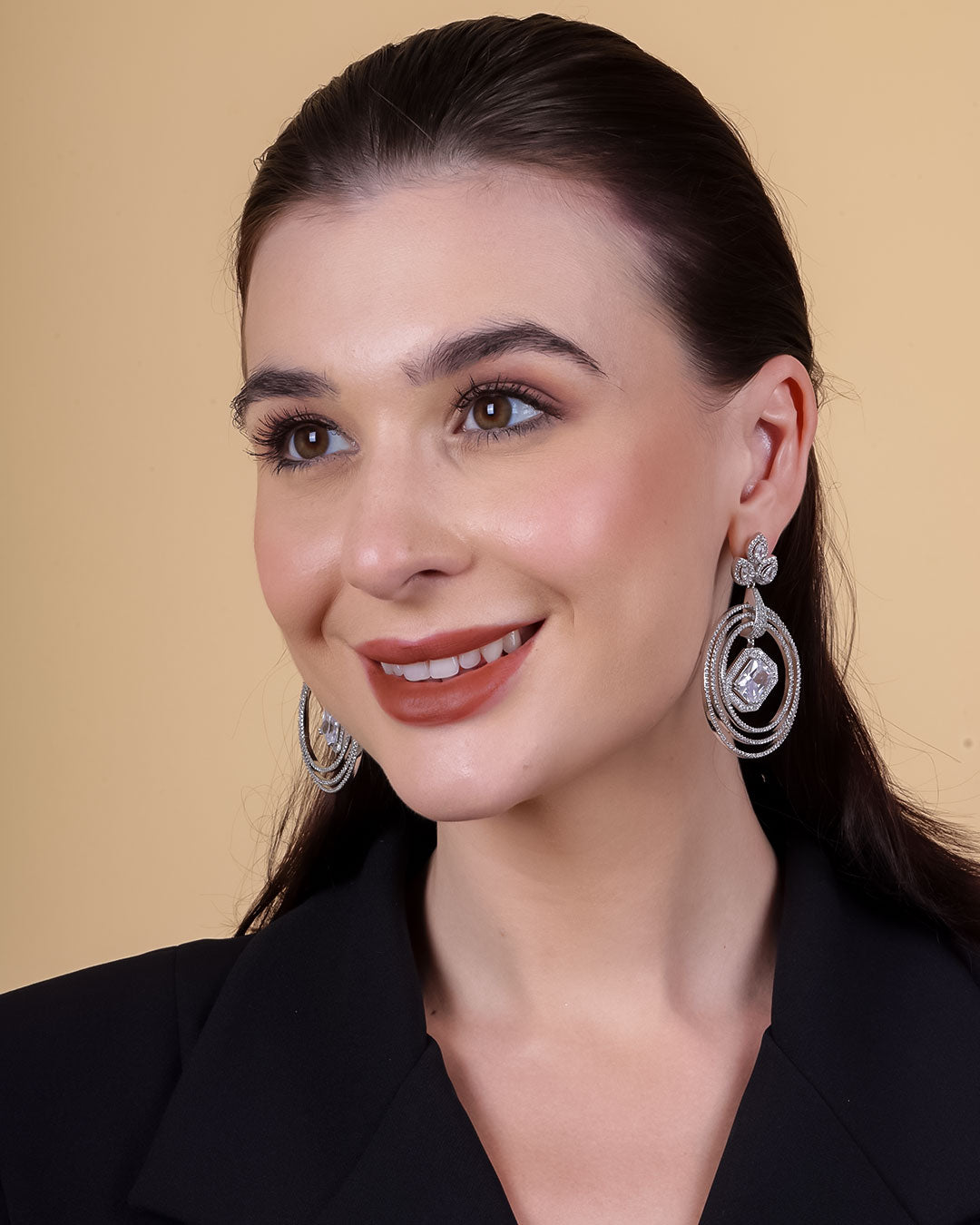 The intricate details of the circular drop create a mesmerising effect, catching the light and adding a touch of glamour to any ensemble. The silver plating gives them a sleek and polished look, perfect for both formal occasions and everyday wear.