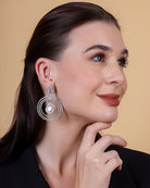 Make a statement with our Silver Plated Circular Drop Designer Danglers and elevate your jewellery collection.